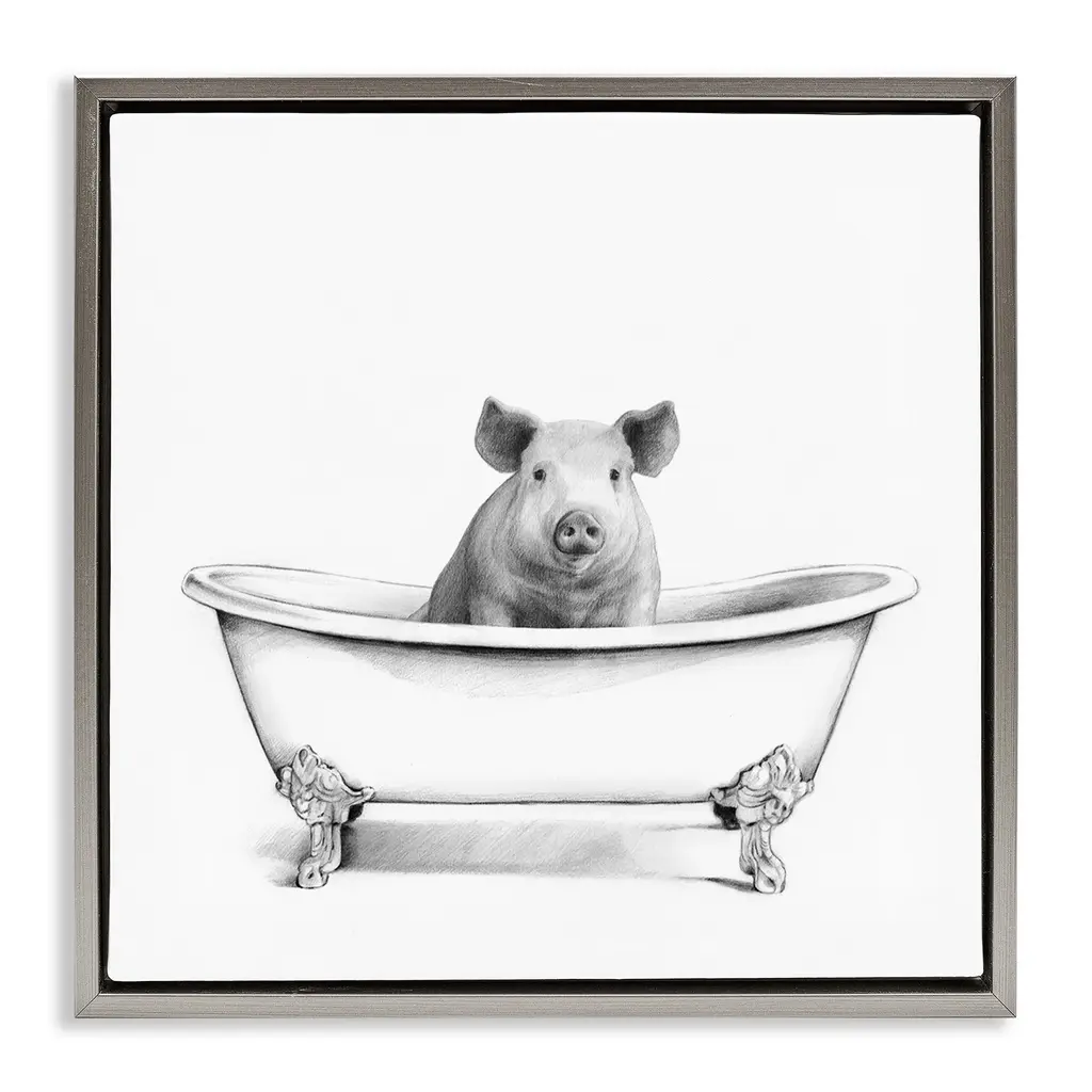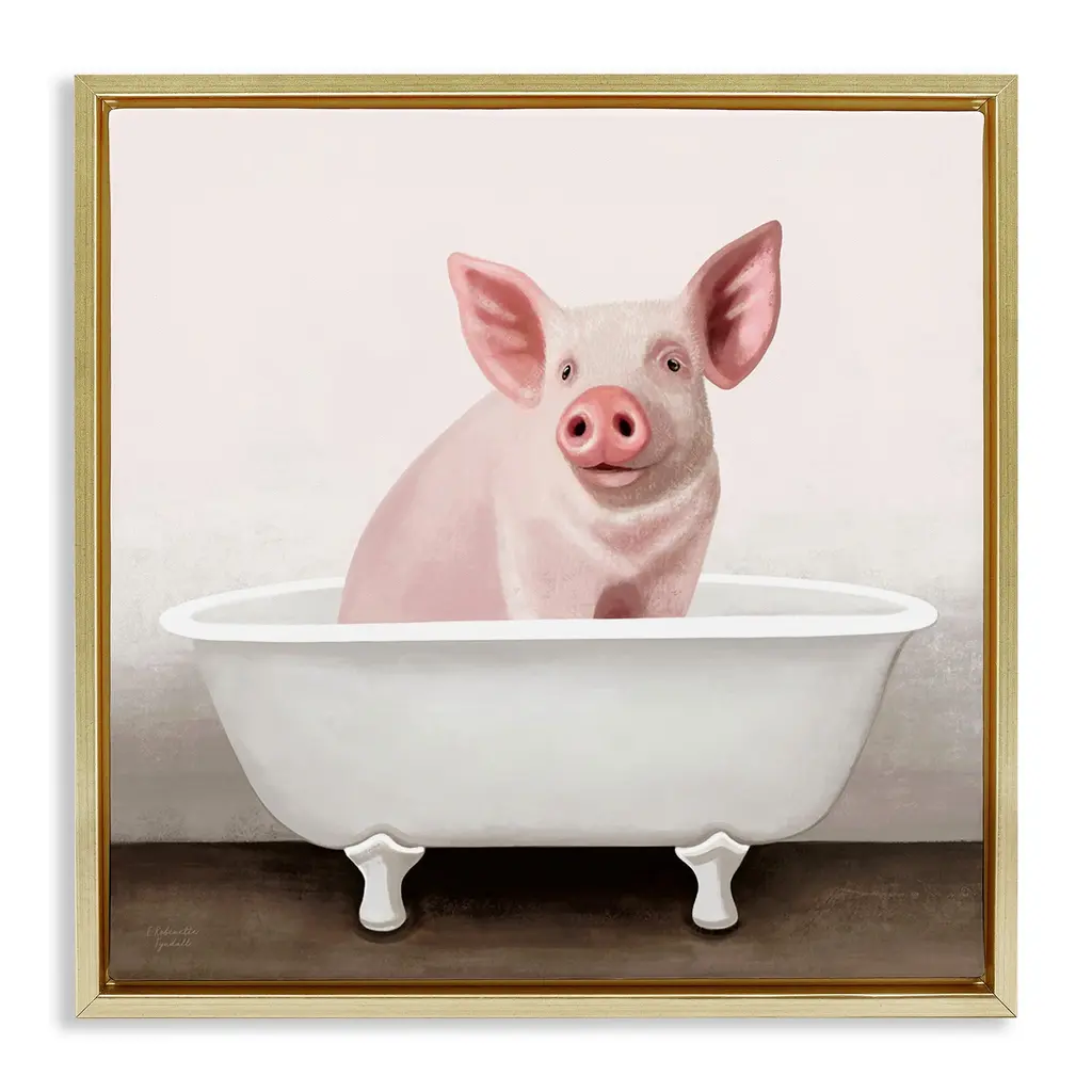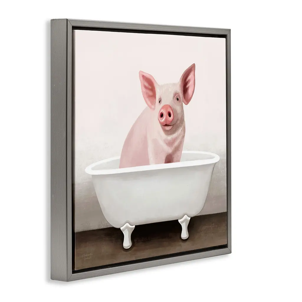 Elevate your home or office to the next level with Stupell Framed Floating Canvas Wall Art. Our premium hand-stretched canvas is mounted securely into a sturdy lightweight frame. The museum-style gap between the wrapped canvas and the box frame gives the illusion of floating artwork. Stupell Wall Art is made in the USA.Features: Dimensions: 18 x 1.7 x 18 Frame, 17 x 1.5 x 17 Canvas ArtFloating Frame Canvas Products are available in sizes 18"x18" and 25"x25". All Floating Frame Canvas Products have a 1.7" Depth.Wall Art is Ready to Hang with Hardware Free Hanging. No Installation required. For Easy Set Up Lean or Layer Artwork on Shelf or Against Wall. Artwork is Permently Fixed into the Frame.Our elevated 1.7" Thick Floating Frame is the perfect complement to our canvas style Wall Art. We use only the highest quality inks in house with industry leading printing solutions. Canvas is hand stretched over a durable wood foundation and then mounted securly into a Modern Box Frame. Made in the USA.Artwork Relates To: Bathroom, Tub, Bathtub, Country, Farmhouse, Pig, Vintage, TraditionalDesign by Elizabeth Tyndall