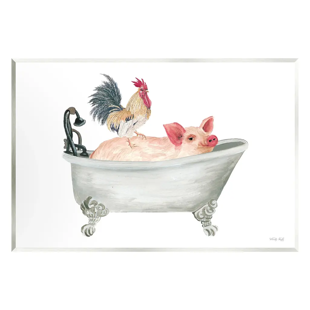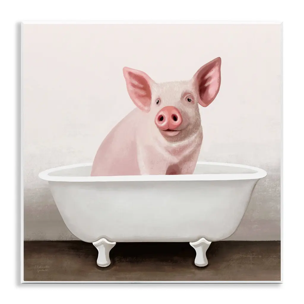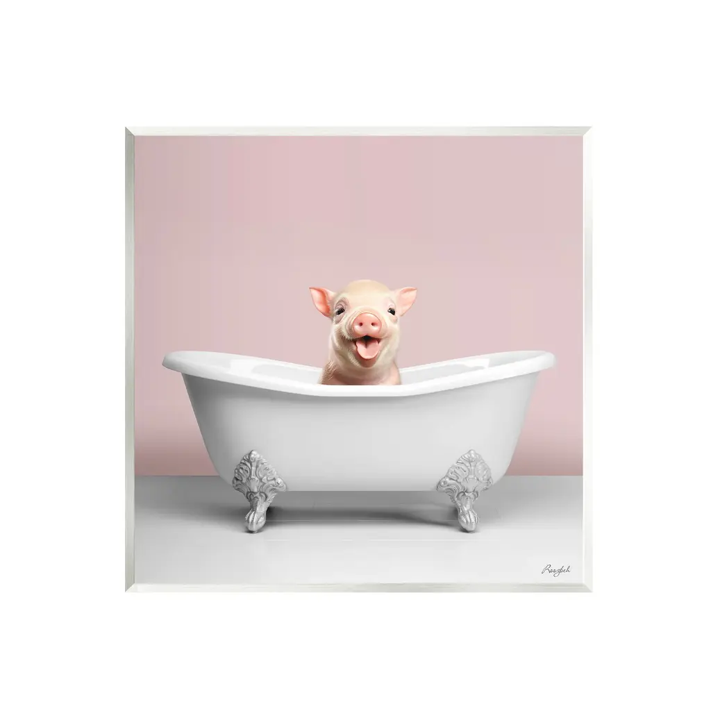 Elevate your home or office to the next level with Stupell Framed Floating Canvas Wall Art. Our premium hand-stretched canvas is mounted securely into a sturdy lightweight frame. The museum-style gap between the wrapped canvas and the box frame gives the illusion of floating artwork. Stupell Wall Art is made in the USA.Features: Dimensions: 18 x 1.7 x 18 Frame, 17 x 1.5 x 17 Canvas ArtFloating Frame Canvas Products are available in sizes 18"x18" and 25"x25". All Floating Frame Canvas Products have a 1.7" Depth.Wall Art is Ready to Hang with Hardware Free Hanging. No Installation required. For Easy Set Up Lean or Layer Artwork on Shelf or Against Wall. Artwork is Permently Fixed into the Frame.Our elevated 1.7" Thick Floating Frame is the perfect complement to our canvas style Wall Art. We use only the highest quality inks in house with industry leading printing solutions. Canvas is hand stretched over a durable wood foundation and then mounted securly into a Modern Box Frame. Made in the USA.Artwork Relates To: Bathroom, Tub, Bathtub, Country, Farmhouse, Pig, Vintage, TraditionalDesign by Elizabeth Tyndall