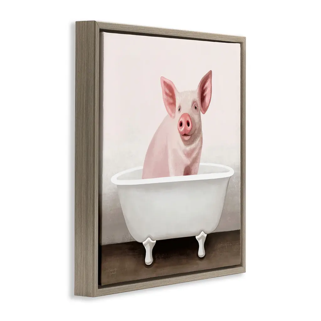 Elevate your home or office to the next level with Stupell Framed Floating Canvas Wall Art. Our premium hand-stretched canvas is mounted securely into a sturdy lightweight frame. The museum-style gap between the wrapped canvas and the box frame gives the illusion of floating artwork. Stupell Wall Art is made in the USA.Features: Dimensions: 18 x 1.7 x 18 Frame, 17 x 1.5 x 17 Canvas ArtFloating Frame Canvas Products are available in sizes 18"x18" and 25"x25". All Floating Frame Canvas Products have a 1.7" Depth.Wall Art is Ready to Hang with Hardware Free Hanging. No Installation required. For Easy Set Up Lean or Layer Artwork on Shelf or Against Wall. Artwork is Permently Fixed into the Frame.Our elevated 1.7" Thick Floating Frame is the perfect complement to our canvas style Wall Art. We use only the highest quality inks in house with industry leading printing solutions. Canvas is hand stretched over a durable wood foundation and then mounted securly into a Modern Box Frame. Made in the USA.Artwork Relates To: Bathroom, Tub, Bathtub, Country, Farmhouse, Pig, Vintage, TraditionalDesign by Elizabeth Tyndall