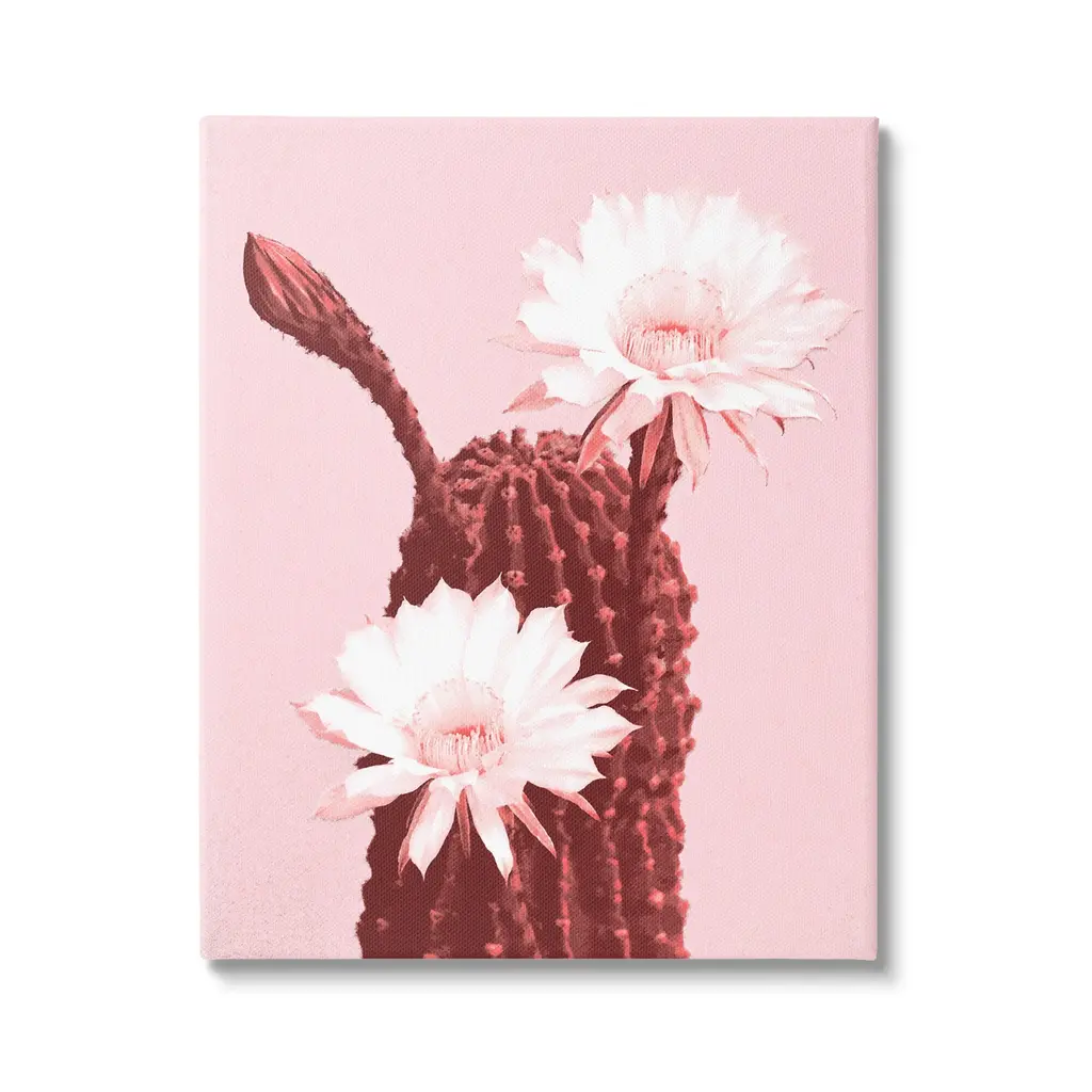 We create our stretched canvas to the highest standards. Using only the highest quality inks and canvas on Mimaki printers, we hand-cut and stretch each piece over a 1.5-inch thick wooden frame for hanging. As a result, the art comes ready to hang on the sturdy ledge with no installation required. Stupell Wall Art is made in the USA.Features: Dimensions: 16 x 1.5 x 20 InchesStretched Canvas Sizes Include Standard: 16 x 1.5 x 20 Large: 20 x 1.5 x 30 X-Large: 30 x 1.5 x 40 Oversized: 36 x 1.5 x 48Wall Art is Ready to Hang with Hardware Free Hanging. No installation required. For Easy Set Up Lean or Layer Artwork on Shelf or Against Wall.Our stretched canvas is created with the highest standards. We use only the highest quality inks and canvas on our in house Mimaki printers, and then hand cut and stretch each piece over a 1.5 inch thick wooden frame for hanging. Made In USA.Artwork Relates To: Cactus, Plant, Tropical, Desert, Pink, Flower, BotanicalDesign by Sisi and Seb