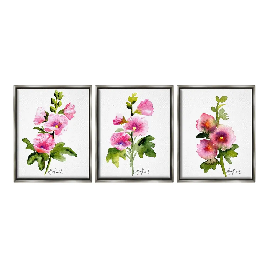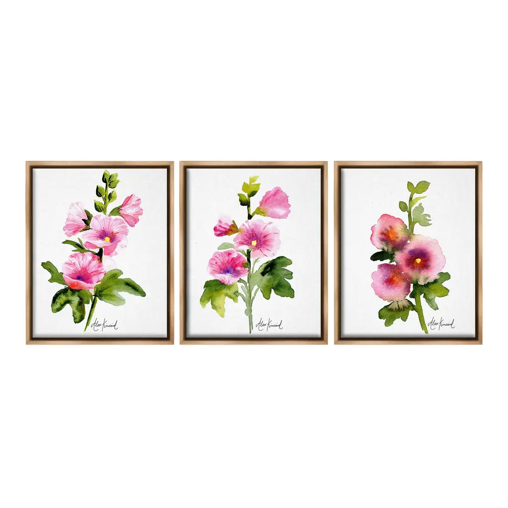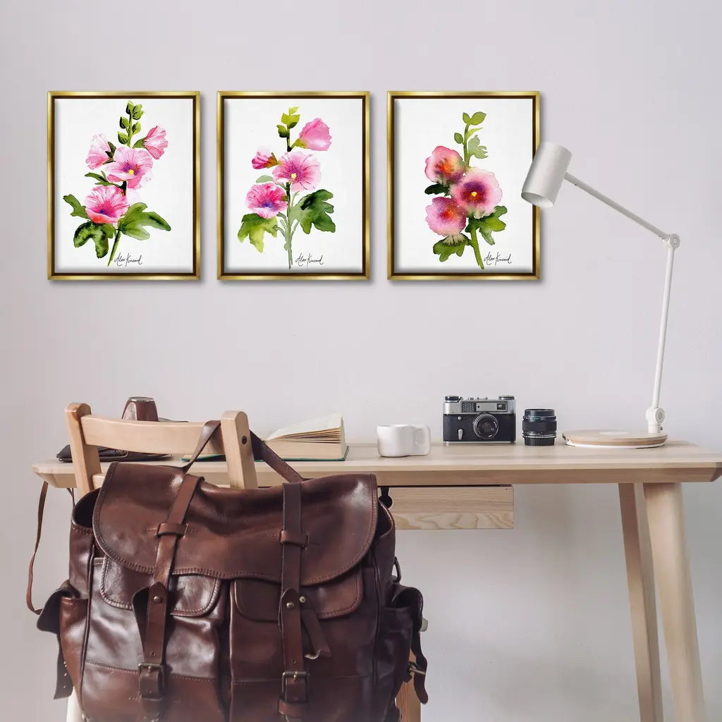 Stupell Pink Flower Watercolors Framed Floater Canvas Wall Art Design By Alexandria Gilbert Kincaid (Set Of 3) - 17 X 21 - Gold