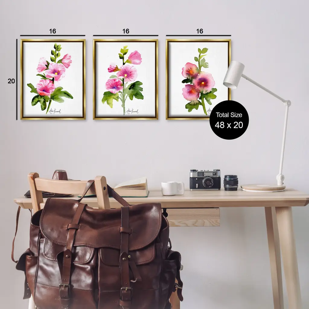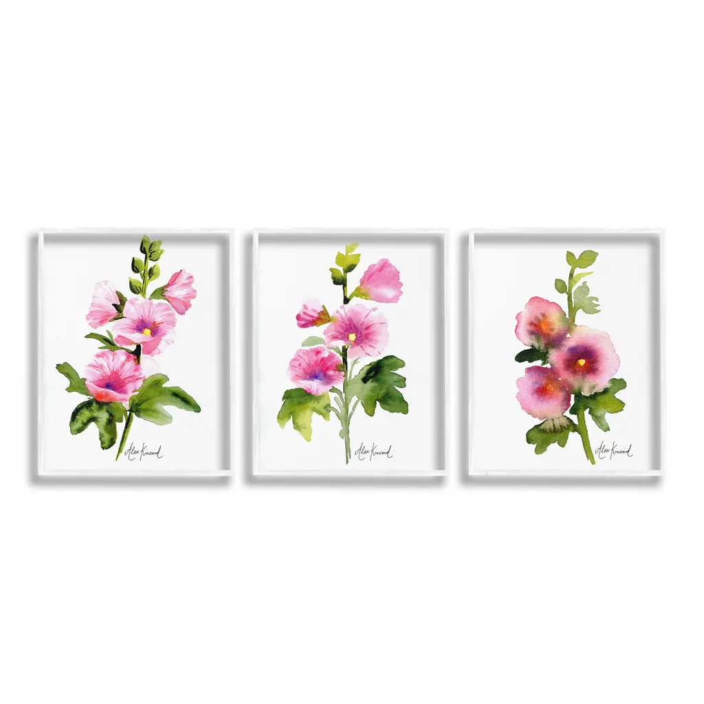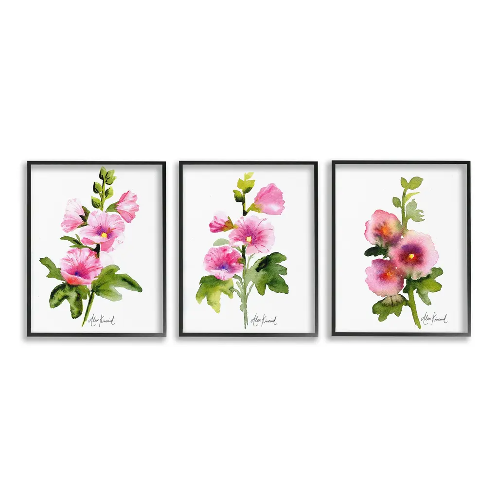 Stupell Pink Flower Watercolors Framed Floater Canvas Wall Art Design By Alexandria Gilbert Kincaid (Set Of 3) - 17 X 21 - Gold