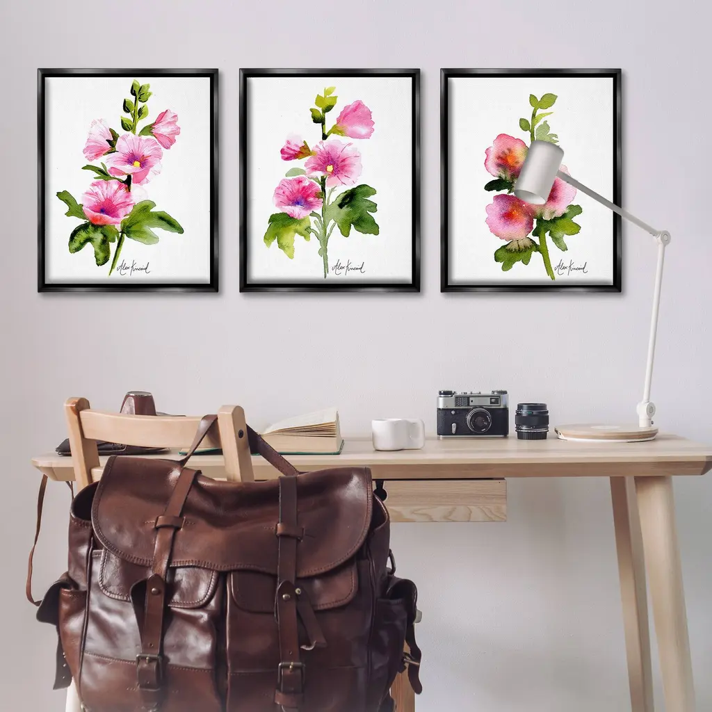 Stupell Pink Flower Watercolors Framed Floater Canvas Wall Art Design By Alexandria Gilbert Kincaid (Set Of 3) - 25 X 31 - Black
