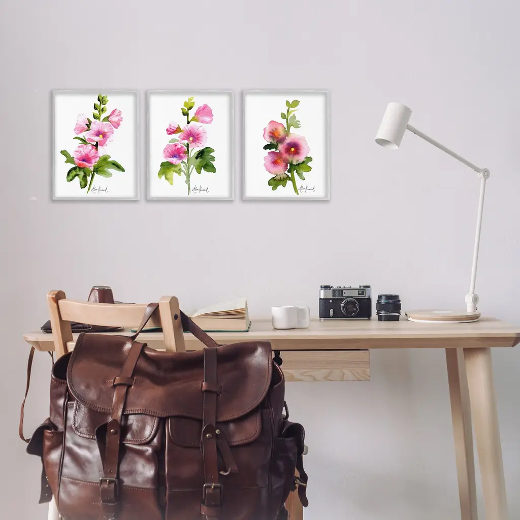 Stupell Pink Flower Watercolors Framed Giclee Art Design By Alexandria Gilbert Kincaid (Set Of 3) - 11 X 14 - Grey