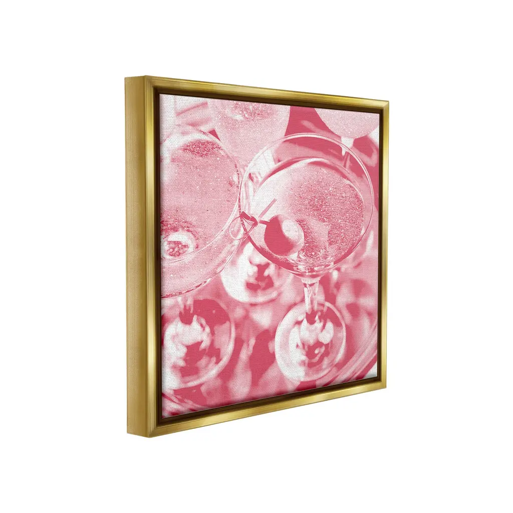 Elevate your home or office to the next level with Stupell Framed Floating Canvas Wall Art. Our premium hand-stretched canvas is mounted securely into a sturdy lightweight frame. The museum-style gap between the wrapped canvas and the box frame gives the illusion of floating artwork. Stupell Wall Art is made in the USA.Features: Dimensions: 18 x 1.7 x 18 Frame, 17 x 1.5 x 17 Canvas ArtFloating Frame Canvas Products are available in sizes 18"x18" and 25"x25". All Floating Frame Canvas Products have a 1.7" Depth.Wall Art is Ready to Hang with Hardware Free Hanging. No Installation required. For Easy Set Up Lean or Layer Artwork on Shelf or Against Wall. Artwork is Permently Fixed into the Frame.Our elevated 1.7" Thick Floating Frame is the perfect complement to our canvas style Wall Art. We use only the highest quality inks in house with industry leading printing solutions. Canvas is hand stretched over a durable wood foundation and then mounted securly into a Modern Box Frame. Made in the USA.Artwork Relates To: Glass, Alcohol, Beverage, Liquor, Wine, Wine Glass, Glam, Pink, CocktailDesign by Lil' Rue