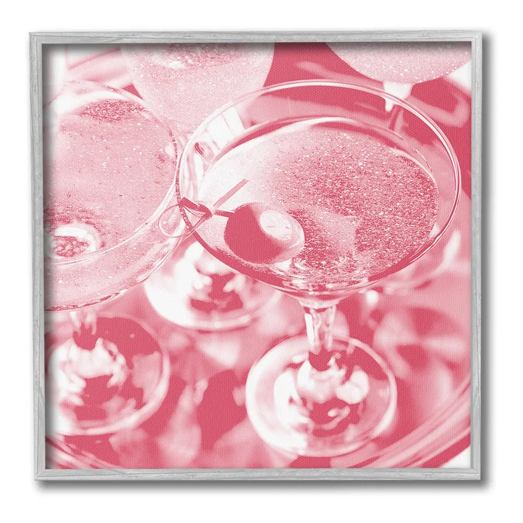 Elevate your home or office to the next level with Stupell Framed Floating Canvas Wall Art. Our premium hand-stretched canvas is mounted securely into a sturdy lightweight frame. The museum-style gap between the wrapped canvas and the box frame gives the illusion of floating artwork. Stupell Wall Art is made in the USA.Features: Dimensions: 18 x 1.7 x 18 Frame, 17 x 1.5 x 17 Canvas ArtFloating Frame Canvas Products are available in sizes 18"x18" and 25"x25". All Floating Frame Canvas Products have a 1.7" Depth.Wall Art is Ready to Hang with Hardware Free Hanging. No Installation required. For Easy Set Up Lean or Layer Artwork on Shelf or Against Wall. Artwork is Permently Fixed into the Frame.Our elevated 1.7" Thick Floating Frame is the perfect complement to our canvas style Wall Art. We use only the highest quality inks in house with industry leading printing solutions. Canvas is hand stretched over a durable wood foundation and then mounted securly into a Modern Box Frame. Made in the USA.Artwork Relates To: Glass, Alcohol, Beverage, Liquor, Wine, Wine Glass, Glam, Pink, CocktailDesign by Lil' Rue
