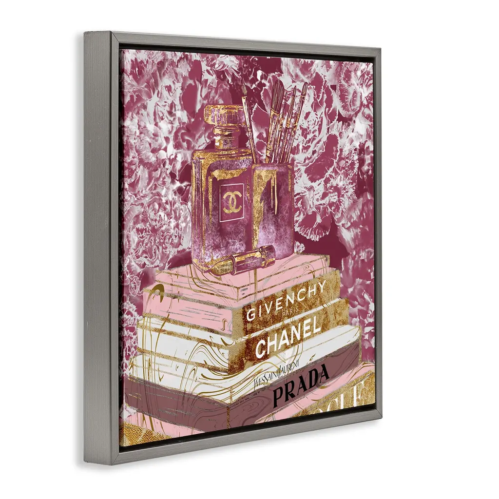 Elevate your home or office to the next level with Stupell Framed Floating Canvas Wall Art. Our premium hand-stretched canvas is mounted securely into a sturdy lightweight frame. The museum-style gap between the wrapped canvas and the box frame gives the illusion of floating artwork. Stupell Wall Art is made in the USA.Features: Dimensions: 18 x 1.7 x 18 Frame, 17 x 1.5 x 17 Canvas ArtFloating Frame Canvas Products are available in sizes 18"x18" and 25"x25". All Floating Frame Canvas Products have a 1.7" Depth.Wall Art is Ready to Hang with Hardware Free Hanging. No Installation required. For Easy Set Up Lean or Layer Artwork on Shelf or Against Wall. Artwork is Permently Fixed into the Frame.Our elevated 1.7" Thick Floating Frame is the perfect complement to our canvas style Wall Art. We use only the highest quality inks in house with industry leading printing solutions. Canvas is hand stretched over a durable wood foundation and then mounted securly into a Modern Box Frame. Made in the USA.Artwork Relates To: Glam, Fashion, Bookstack, Heels, Shoes, Perfume, Floral, PatternDesign by Ziwei Li