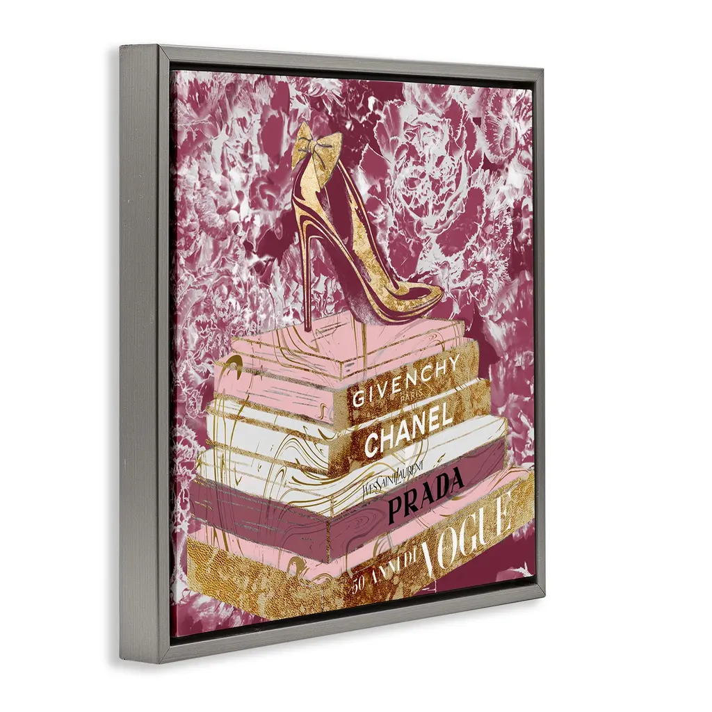 Stupell Pink Glitz Heel On Bookstack Framed Floater Canvas Wall Art Design By Ziwei Li - 18 X 18 - Grey