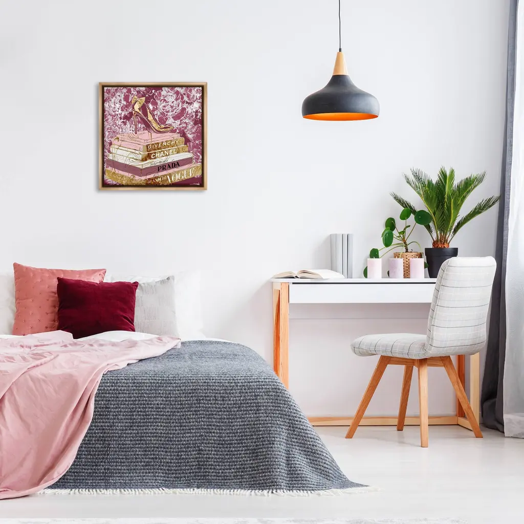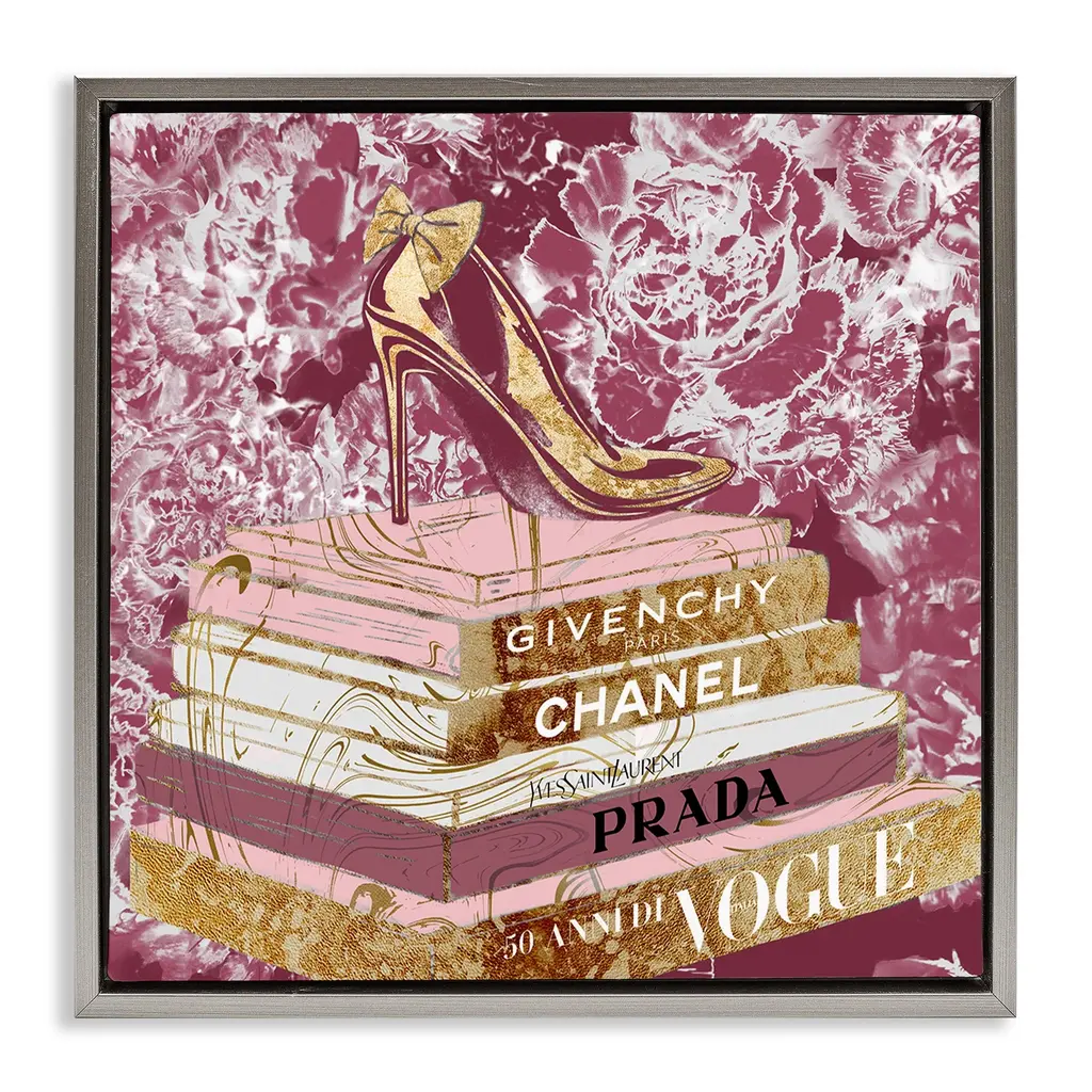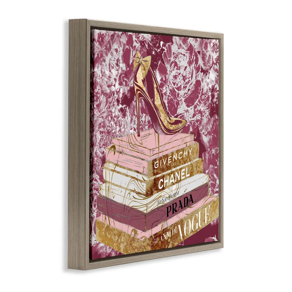 Stupell Pink Glitz Heel On Bookstack Framed Floater Canvas Wall Art Design By Ziwei Li - 25 X 25 - Brown