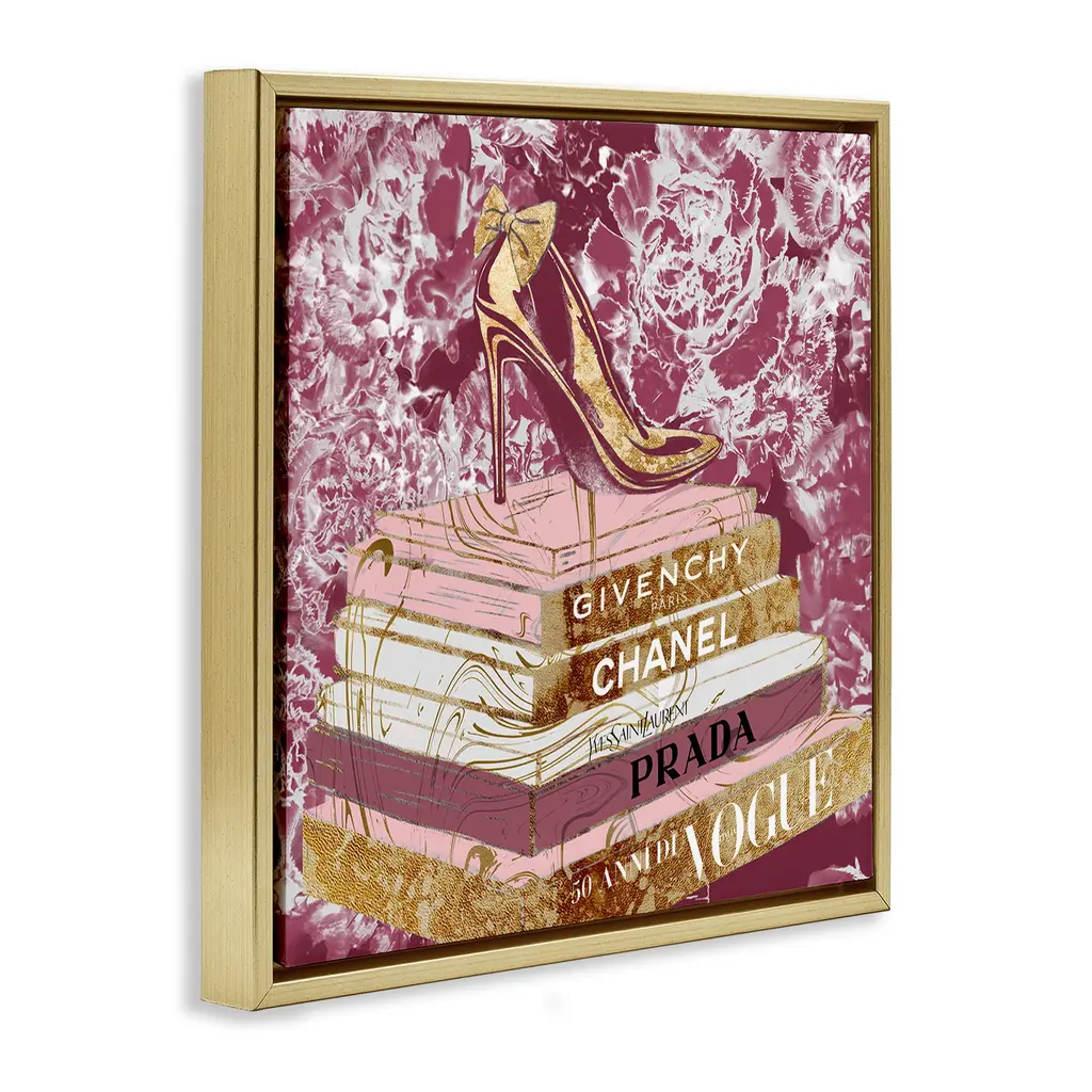 Elevate your home or office to the next level with Stupell Framed Floating Canvas Wall Art. Our premium hand-stretched canvas is mounted securely into a sturdy lightweight frame. The museum-style gap between the wrapped canvas and the box frame gives the illusion of floating artwork. Stupell Wall Art is made in the USA.Features: Dimensions: 18 x 1.7 x 18 Frame, 17 x 1.5 x 17 Canvas ArtFloating Frame Canvas Products are available in sizes 18"x18" and 25"x25". All Floating Frame Canvas Products have a 1.7" Depth.Wall Art is Ready to Hang with Hardware Free Hanging. No Installation required. For Easy Set Up Lean or Layer Artwork on Shelf or Against Wall. Artwork is Permently Fixed into the Frame.Our elevated 1.7" Thick Floating Frame is the perfect complement to our canvas style Wall Art. We use only the highest quality inks in house with industry leading printing solutions. Canvas is hand stretched over a durable wood foundation and then mounted securly into a Modern Box Frame. Made in the USA.Artwork Relates To: Glam, Fashion, Bookstack, Heels, Shoes, Perfume, Floral, PatternDesign by Ziwei Li