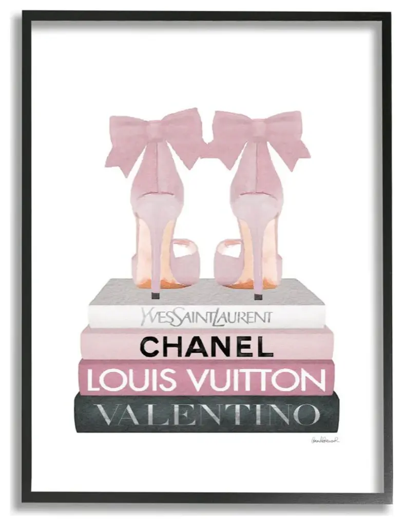 Elevate your home or office to the next level with Stupell Framed Floating Canvas Wall Art. Our premium hand-stretched canvas is mounted securely into a sturdy lightweight frame. The museum-style gap between the wrapped canvas and the box frame gives the illusion of floating artwork. Stupell Wall Art is made in the USA.Features: Dimensions: 17 x 1.7 x 21 Frame, 16 x 1.5 x 20 Canvas ArtFloating Frame Canvas Products are available in sizes 17"x21" and 25"x31". All Floating Frame Canvas Products have a 1.7" Depth.Wall Art is Ready to Hang with Hardware Free Hanging. No Installation required. For Easy Set Up Lean or Layer Artwork on Shelf or Against Wall. Artwork is Permently Fixed into the Frame.Our elevated 1.7" Thick Floating Frame is the perfect complement to our canvas style Wall Art. We use only the highest quality inks in house with industry leading printing solutions. Canvas is hand stretched over a durable wood foundation and then mounted securly into a Modern Box Frame. Made in the USA.Artwork Relates To: Glam, Bookstack, Shoes, Heels, Accessories, FashionDesign by Amanda Greenwood