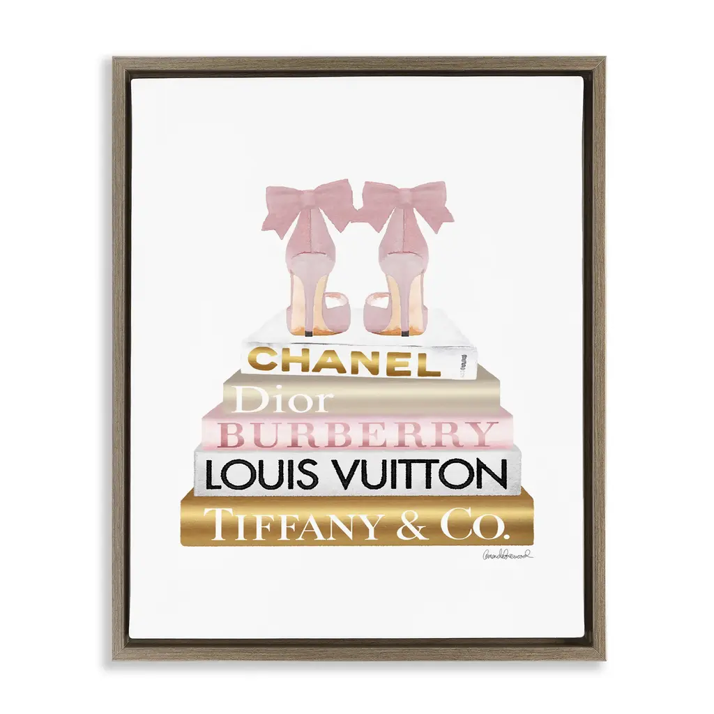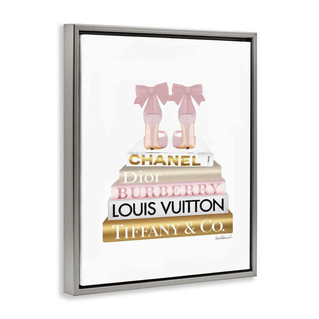 Elevate your home or office to the next level with Stupell Framed Floating Canvas Wall Art. Our premium hand-stretched canvas is mounted securely into a sturdy lightweight frame. The museum-style gap between the wrapped canvas and the box frame gives the illusion of floating artwork. Stupell Wall Art is made in the USA.Features: Dimensions: 17 x 1.7 x 21 Frame, 16 x 1.5 x 20 Canvas ArtFloating Frame Canvas Products are available in sizes 17"x21" and 25"x31". All Floating Frame Canvas Products have a 1.7" Depth.Wall Art is Ready to Hang with Hardware Free Hanging. No Installation required. For Easy Set Up Lean or Layer Artwork on Shelf or Against Wall. Artwork is Permently Fixed into the Frame.Our elevated 1.7" Thick Floating Frame is the perfect complement to our canvas style Wall Art. We use only the highest quality inks in house with industry leading printing solutions. Canvas is hand stretched over a durable wood foundation and then mounted securly into a Modern Box Frame. Made in the USA.Artwork Relates To: Glam, Bookstack, Shoes, Heels, Accessories, FashionDesign by Amanda Greenwood