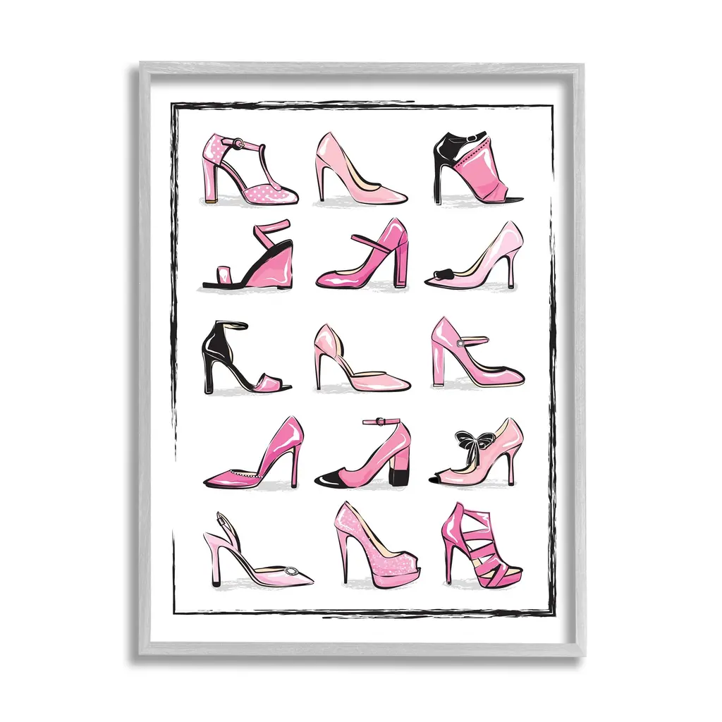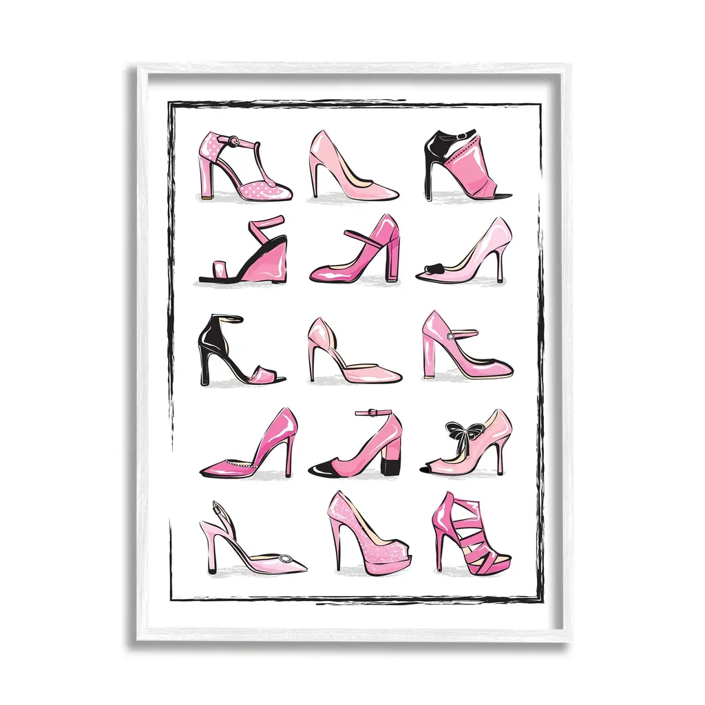 Stupell Pink Heels Lined Up Women's Glam Shoes Framed Wall Art - 16 X 20 - Black