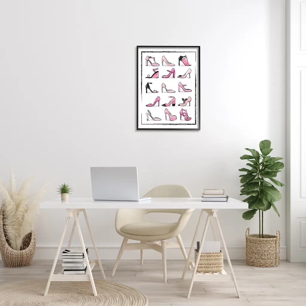 Stupell Pink Heels Lined Up Women's Glam Shoes Framed Wall Art - 24 X 30 - Black