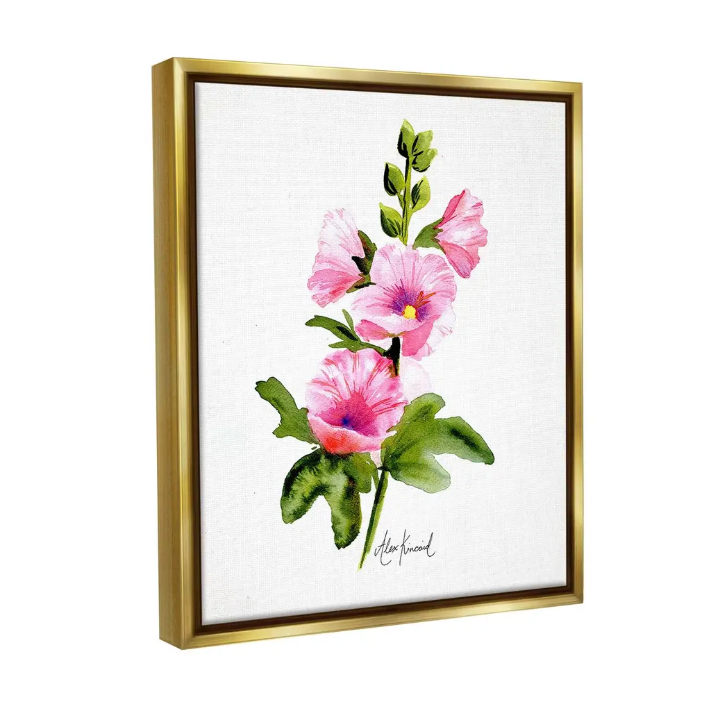 Stupell Pink Hollyhock Blooms Framed Floater Canvas Wall Art Design By Alexandria Gilbert Kincaid - 17 X 21 - Gold