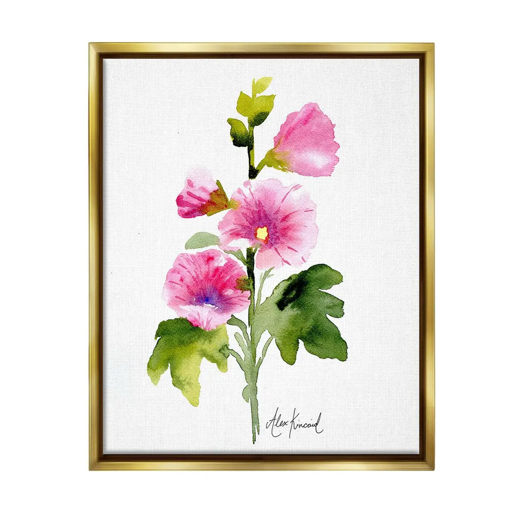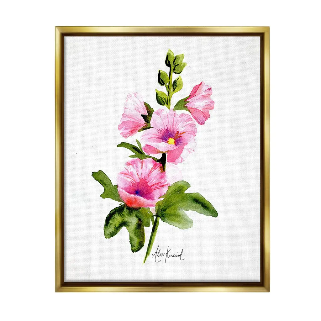 Stupell Pink Hollyhock Blooms Framed Floater Canvas Wall Art Design By Alexandria Gilbert Kincaid - 17 X 21 - Grey