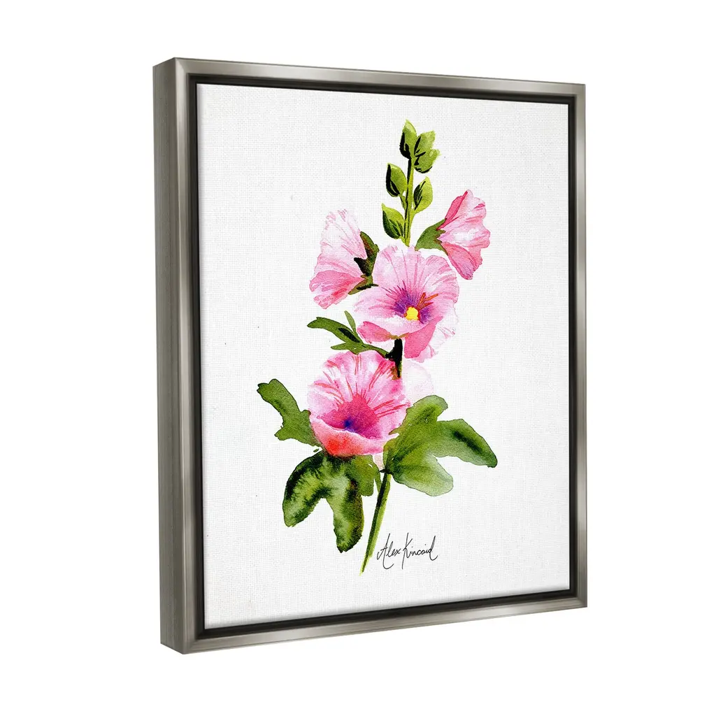 Stupell Pink Hollyhock Blooms Framed Floater Canvas Wall Art Design By Alexandria Gilbert Kincaid - 25 X 31 - Grey