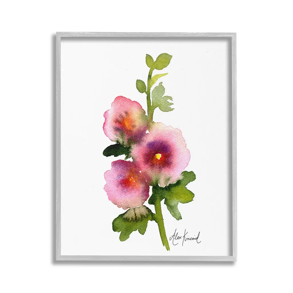 Stupell Pink Hollyhock Blooms Framed Giclee Art Design By Alexandria Gilbert Kincaid - 11 X 14 - Grey