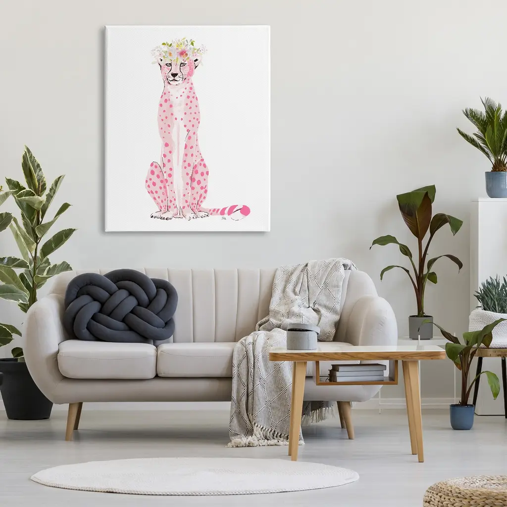 Proudly made in the USA, Our stretched canvas is created with the highest standards. We use only the highest quality inks and canvas on our in house Mimaki printers, and then hand cut and stretch each piece over a 1.5 inch thick wooden frame for hanging. The art comes ready to hang with no installation required. Room Type: Living Room, Den, Hallway, Office, Entryway, Study, Dining Room or Bedroom, Guest Room, Studio, Dorm or BoudoirFeatures: Dimensions: 16 x 1.5 x 20 InchesStretched Canvas Sizes Include Standard: 16 x 1.5 x 20 Large: 20 x 1.5 x 30 X-Large: 30 x 1.5 x 40 Oversized: 36 x 1.5 x 48Wall Art is Ready to Hang - No Installation or Hardware Needed. For Easy Set Up Lean or Layer Artwork on Shelf or Against Wall.Our stretched canvas is created with the highest standards. We use only the highest quality inks and canvas on our in house Mimaki printers, and then hand cut and stretch each piece over a 1.5 inch thick wooden frame for hanging. Made In USA.Artwork Relates To: Animal, Cheetah, Mammal, Wildlife, Leopard, Pink, Floral, FlowerDesign by Patricia Pinto