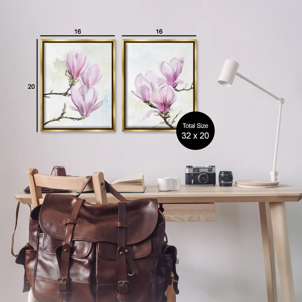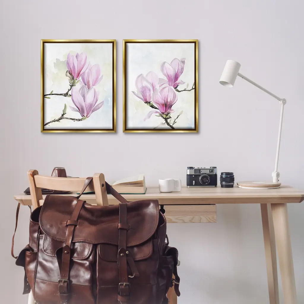 Elevate your home or office to the next level with Stupell Framed Floating Canvas Wall Art. Our premium hand-stretched canvas is mounted securely into a sturdy lightweight frame. The museum-style gap between the wrapped canvas and the box frame gives the illusion of floating artwork. Stupell Wall Art is made in the USA.Features: Dimensions: 2 Piece Set, Each Frame is 17 x 1.7 x 21Two Piece Floater Framed Canvas are available as 17x21 or 25x31 Panels. All Floater Frame Products have a 1.7" Depth.Wall Art is Ready to Hang with Hardware Free Hanging. No Installation required. For Easy Set Up Lean or Layer Artwork on Shelf or Against Wall. Artwork is Permently Fixed into the Frame.Our elevated 1.7" Thick Floating Frame is the perfect complement to our canvas style Wall Art. We use only the highest quality inks in house with industry leading printing solutions. Canvas is hand stretched over a durable wood foundation and then mounted securly into a Modern Box Frame. Made in the USA.Artwork Relates To: Flower, Petal, Plant, Magnolia, Minimal, VintageDesign by Jennifer Paxton Parker
