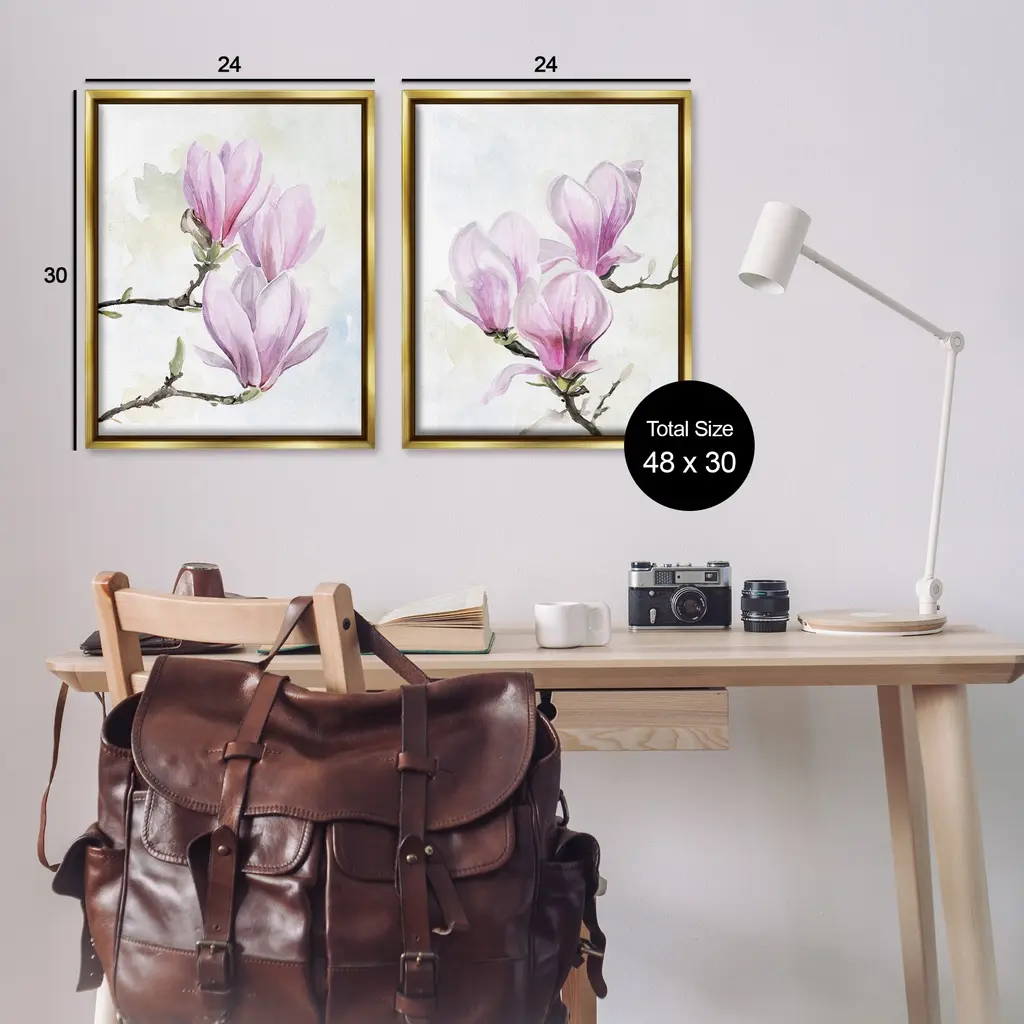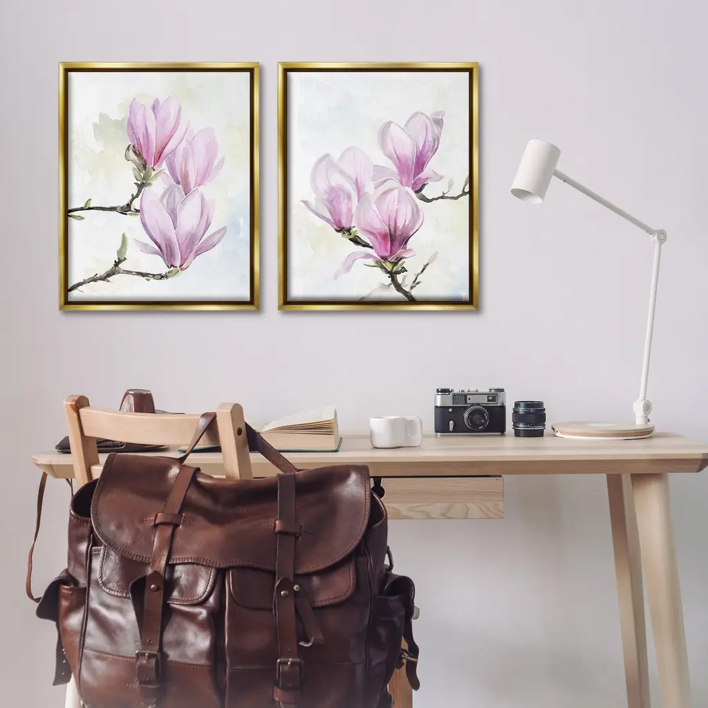 Elevate your home or office to the next level with Stupell Framed Floating Canvas Wall Art. Our premium hand-stretched canvas is mounted securely into a sturdy lightweight frame. The museum-style gap between the wrapped canvas and the box frame gives the illusion of floating artwork. Stupell Wall Art is made in the USA.Features: Dimensions: 2 Piece Set, Each Frame is 17 x 1.7 x 21Two Piece Floater Framed Canvas are available as 17x21 or 25x31 Panels. All Floater Frame Products have a 1.7" Depth.Wall Art is Ready to Hang with Hardware Free Hanging. No Installation required. For Easy Set Up Lean or Layer Artwork on Shelf or Against Wall. Artwork is Permently Fixed into the Frame.Our elevated 1.7" Thick Floating Frame is the perfect complement to our canvas style Wall Art. We use only the highest quality inks in house with industry leading printing solutions. Canvas is hand stretched over a durable wood foundation and then mounted securly into a Modern Box Frame. Made in the USA.Artwork Relates To: Flower, Petal, Plant, Magnolia, Minimal, VintageDesign by Jennifer Paxton Parker