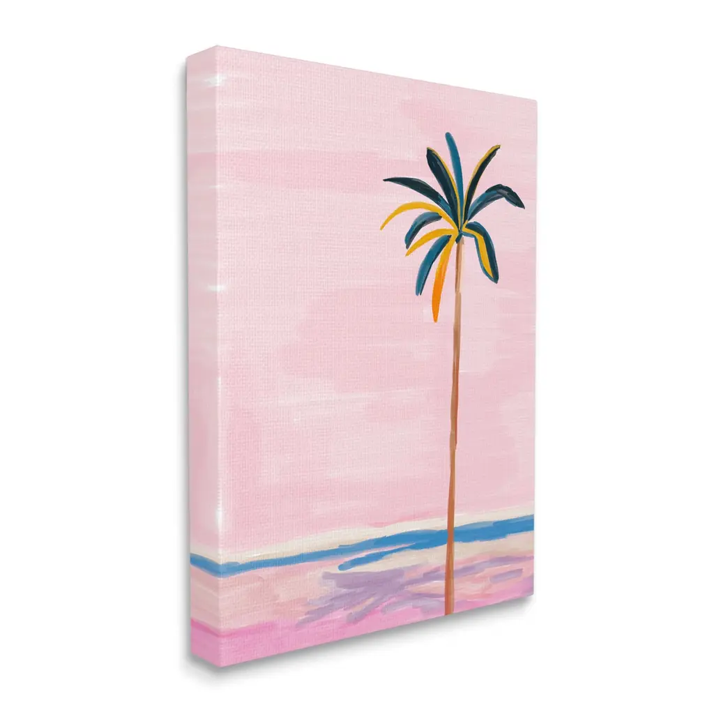We create our stretched canvas to the highest standards. Using only the highest quality inks and canvas on Mimaki printers, we hand-cut and stretch each piece over a 1.5-inch thick wooden frame for hanging. As a result, the art comes ready to hang on the sturdy ledge with no installation required. Stupell Wall Art is made in the USA.Features: Dimensions: 16 x 1.5 x 20 InchesStretched Canvas Sizes Include Standard: 16 x 1.5 x 20 Large: 20 x 1.5 x 30 X-Large: 30 x 1.5 x 40 Oversized: 36 x 1.5 x 48Wall Art is Ready to Hang with Hardware Free Hanging. No installation required. For Easy Set Up Lean or Layer Artwork on Shelf or Against Wall.Our stretched canvas is created with the highest standards. We use only the highest quality inks and canvas on our in house Mimaki printers, and then hand cut and stretch each piece over a 1.5 inch thick wooden frame for hanging. Made In USA.Artwork Relates To: Summer, Sky, Beach, Coast, Sea, Shoreline, Water, Scenery, Palm TreeDesign by Amelia Noyes