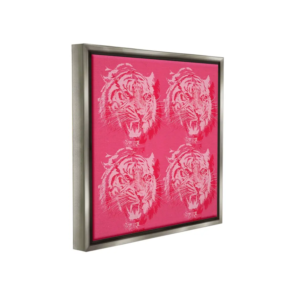 Stupell Pink Roaring Tigers Framed Floater Canvas Wall Art Design By Lil' Rue - 25 X 25 - Grey