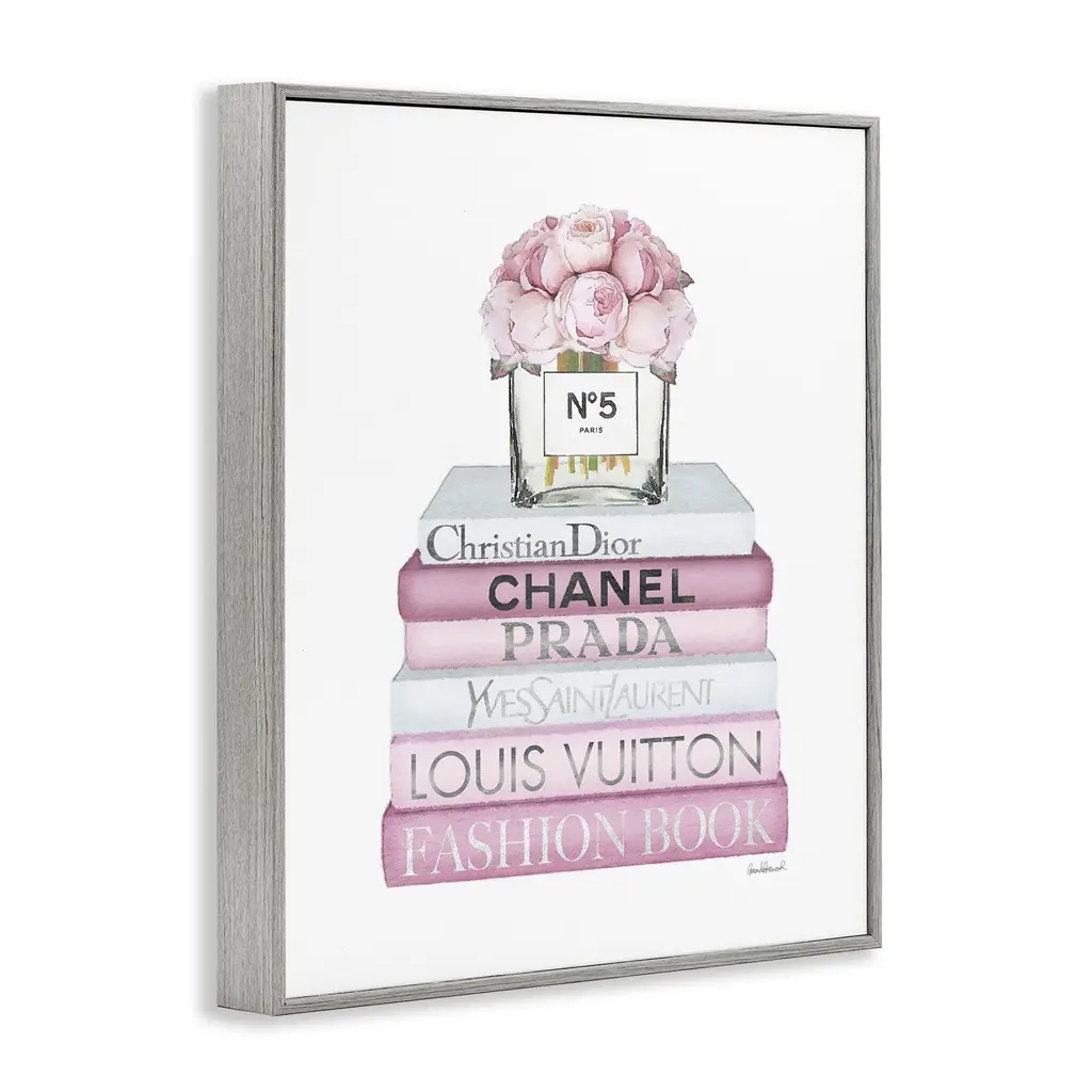 Stupell Pink Rose Bouquet And Fashion Designer Bookstack Framed Wall Art - 16 X 20 - Grey
