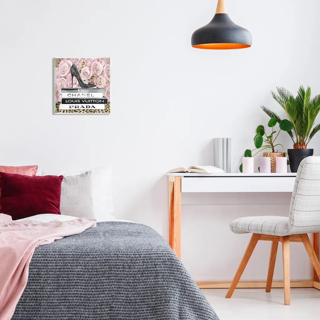 Our wall plaques start as high-quality lithograph prints mounted on durable 0.5-inch thick MDF wood. Each piece is hand finished and comes with a fresh layer of white foil on the sides to give it a crisp, clean look. Plaques arrive ready to hang without installation and come with removable plastic corners to keep them from damage in transit. Stupell Industries Wall Art is made in the USA.Features: Dimensions: 12 x 0.5 x 12 InchesWall Art is Ready to Hang with Hardware Free Hanging. No installation required. For Easy Set Up Lean or Layer Artwork on Shelf or Against Wall.All of our wall plaques start off as high quality lithograph prints that are then mounted on durable 0.5 inch thick MDF wood. Each piece is hand finished and comes with a fresh layer of foil on the sides to give it a crisp clean look. Made In USA.Artwork Relates To: High Heel, Shoe, Flower, Plant, Rose, Book, Floral, Glam, Fashion, Bookstack, Leopard PatternDesign by Madeline Blake