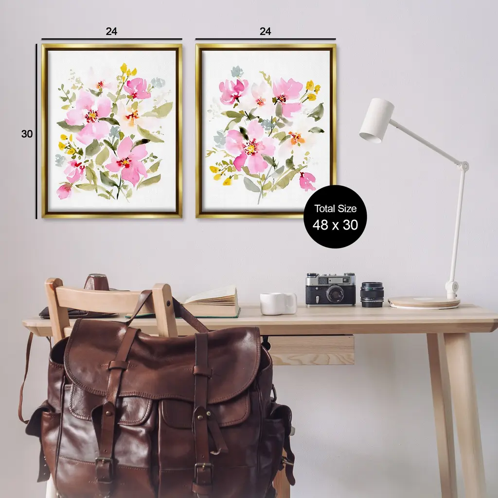 Stupell Pink Scattered Blooms Framed Floater Canvas Wall Art Design By Victoria Barnes (Set Of 2) - 25 X 31 - Gold