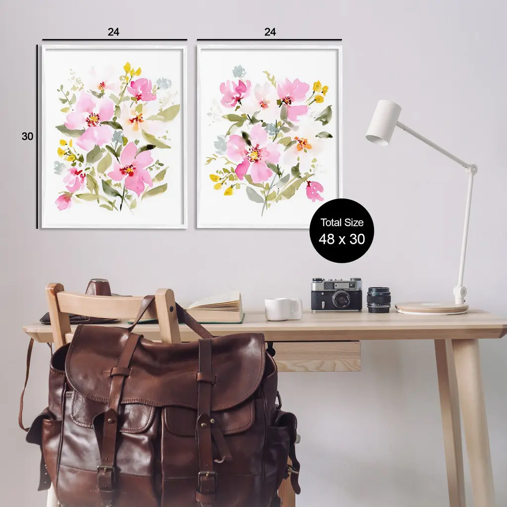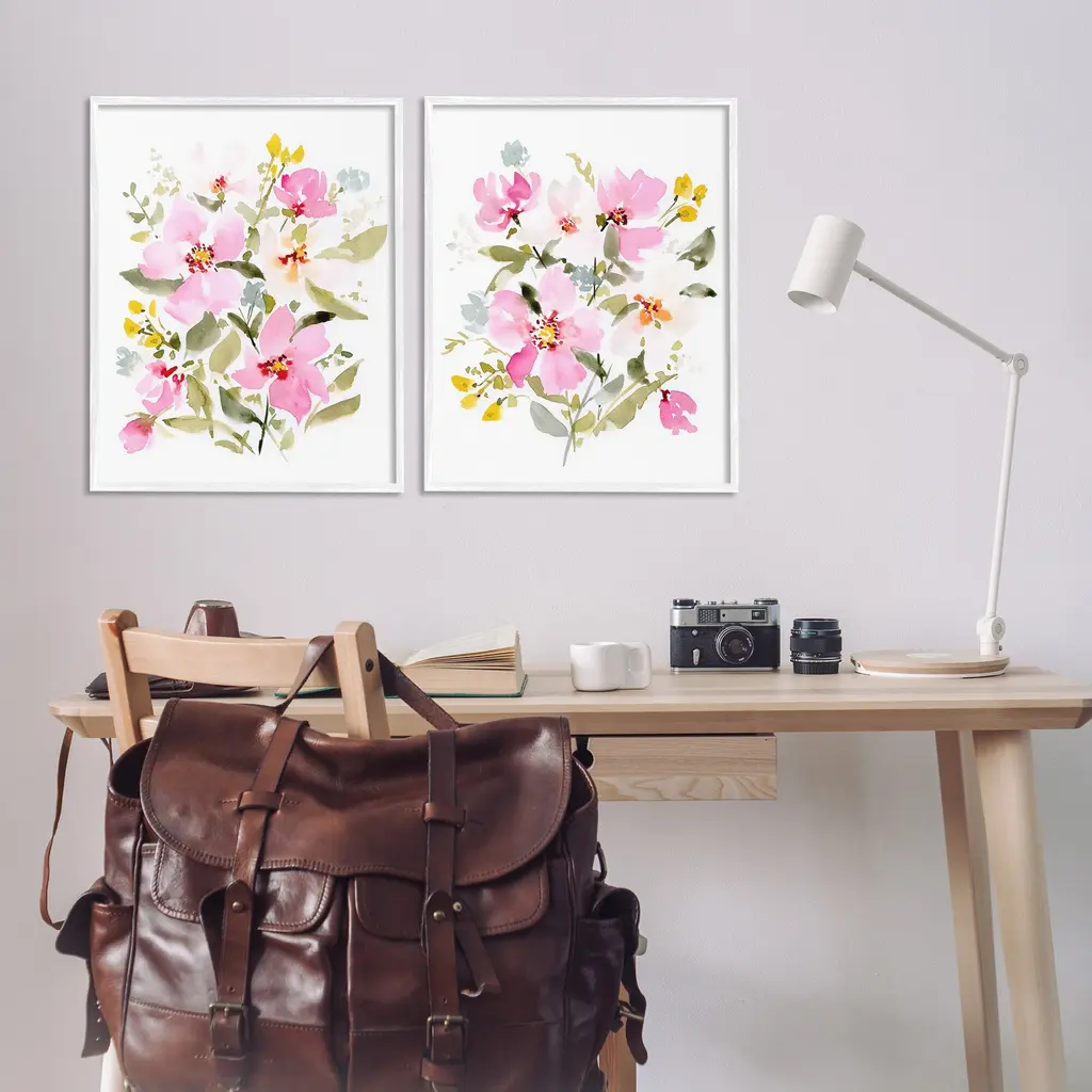 Stupell Pink Scattered Blooms Framed Giclee Art Design By Victoria Barnes (Set Of 2) - 24 X 30 - White