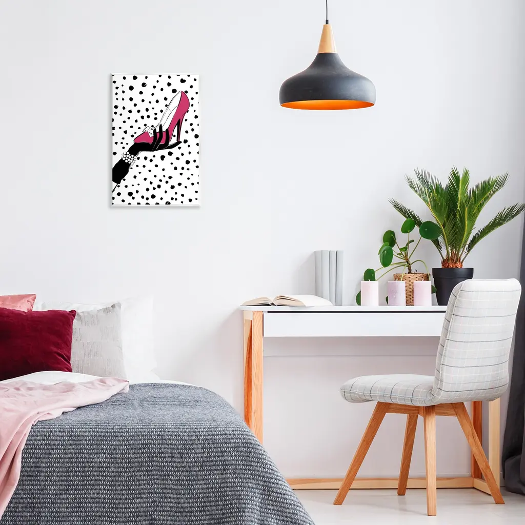 Stupell Pink Shoe With Dots Wall Plaque Art Design By Martina Pavlova - 13 X 19