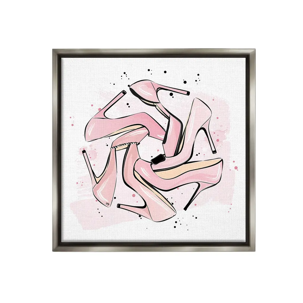 Our wall plaques start as high-quality lithograph prints mounted on durable 0.5-inch thick MDF wood. Each piece is hand finished and comes with a fresh layer of white foil on the sides to give it a crisp, clean look. Plaques arrive ready to hang without installation and come with removable plastic corners to keep them from damage in transit. Stupell Wall Art is made in the USA.Features: Dimensions: 10 x 0.5 x 15 InchesWall Plaque Product Sizes Include 10"x15" and 13"x19". All wall plaque products have a 0.5" Depth. Wall Art is Ready to Hang with Hardware Free Hanging. No installation required. For Easy Set Up Lean or Layer Artwork on Shelf or Against Wall.All of our wall plaques start off as high quality lithograph prints that are then mounted on durable 0.5 inch thick MDF wood. Each piece is hand finished and comes with a fresh layer of foil on the sides to give it a crisp clean look. Made In USA.Artwork Relates To: Shoes, Heels, Glam, Fashion, High Heel, PatternDesign by Martina Pavlova