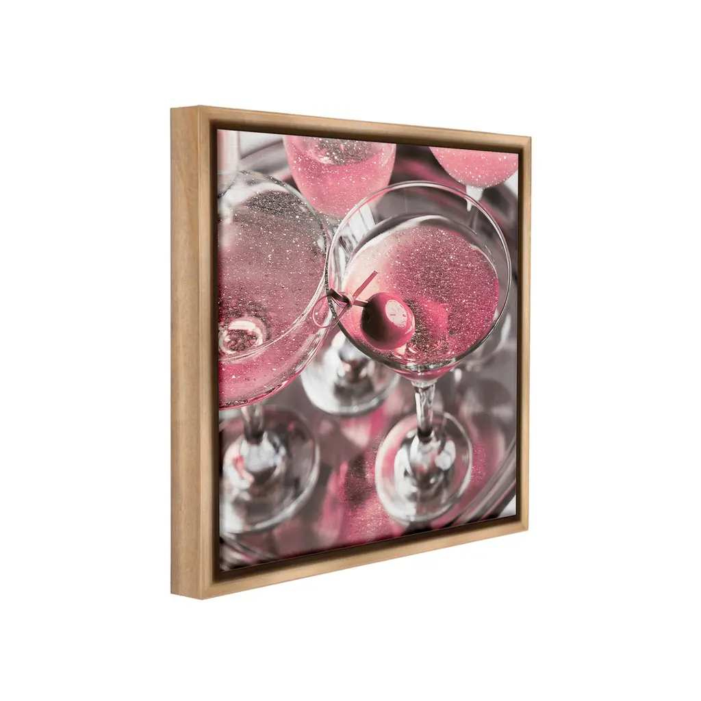 Elevate your home or office to the next level with Stupell Framed Floating Canvas Wall Art. Our premium hand-stretched canvas is mounted securely into a sturdy lightweight frame. The museum-style gap between the wrapped canvas and the box frame gives the illusion of floating artwork. Stupell Wall Art is made in the USA.Features: Dimensions: 18 x 1.7 x 18 Frame, 17 x 1.5 x 17 Canvas ArtFloating Frame Canvas Products are available in sizes 18"x18" and 25"x25". All Floating Frame Canvas Products have a 1.7" Depth.Wall Art is Ready to Hang with Hardware Free Hanging. No Installation required. For Easy Set Up Lean or Layer Artwork on Shelf or Against Wall. Artwork is Permently Fixed into the Frame.Our elevated 1.7" Thick Floating Frame is the perfect complement to our canvas style Wall Art. We use only the highest quality inks in house with industry leading printing solutions. Canvas is hand stretched over a durable wood foundation and then mounted securly into a Modern Box Frame. Made in the USA.Artwork Relates To: Glass, Alcohol, Beverage, Liquor, Wine, Wine Glass, Glam, Pink, Cocktail, MartiniDesign by Lil' Rue