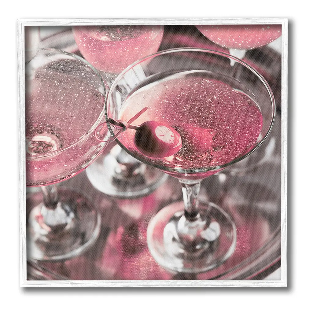 Add dimension to any room with our textured Framed Giclee Artwork. Our framed artwork is securely mounted into a 1.5-inch thick wood grain frame and ready to hang. Frames are available in three alluring styles: black, gray farmhouse and white. In addition, you should check out our oversized options if you want a statement piece. Stupell Wall Art is made in the USA.Features: Dimensions: 12 x 1.5 x 12 FramedFramed Giclee Product Sizes Include 12"x12", 17"x17", and 24"x24". Framed Giclee Products have a 1.5" Depth. Wall Art is Ready to Hang with Hardware Free Hanging. No installation required. For Easy Set Up Lean or Layer Artwork on Shelf or Against Wall.Our giclée prints are carefully mounted on a durable MDF backing, and then perfectly finished in a 1.5 inch thick woodgrain frame. Mounted frame colors include black, gray farmhouse and white. Made In USA.Artwork Relates To: Glass, Alcohol, Beverage, Liquor, Wine, Wine Glass, Glam, Pink, Cocktail, MartiniDesign by Lil' Rue