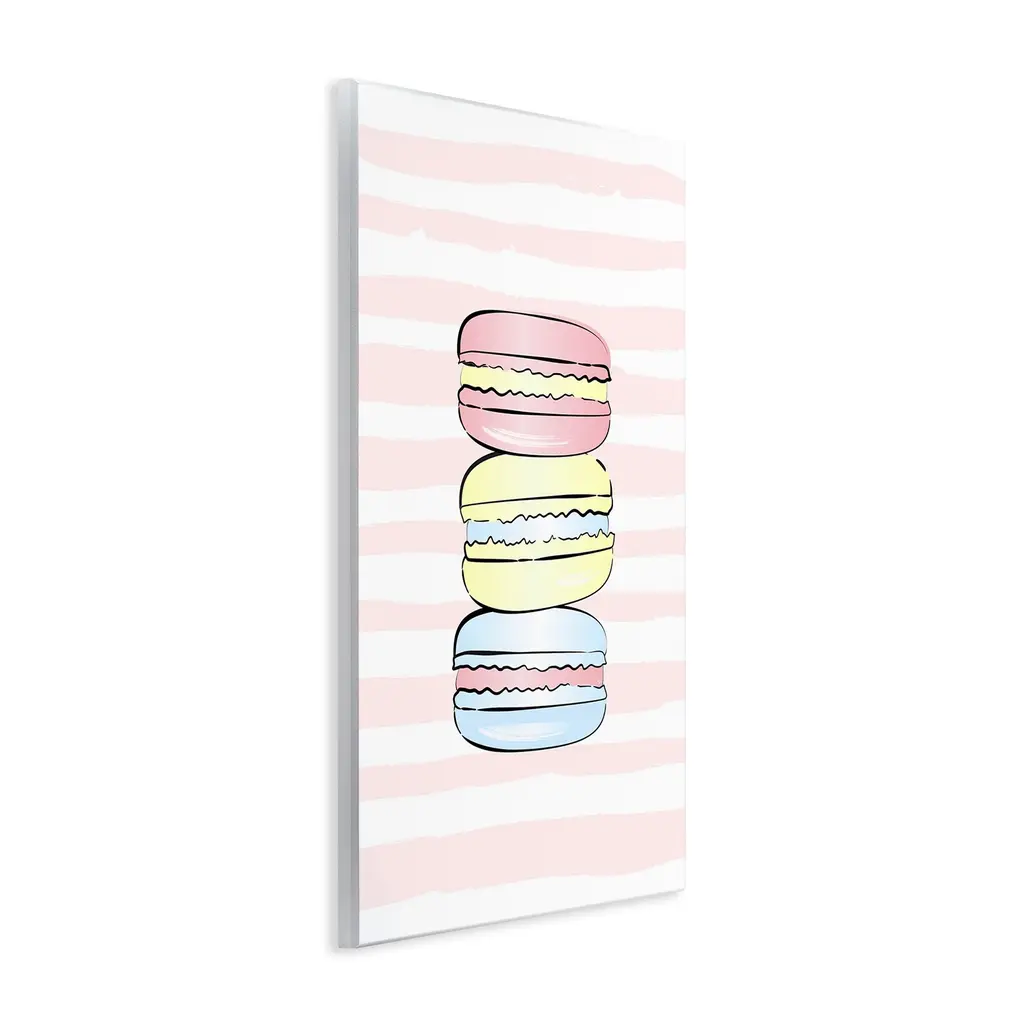 Our wall plaques start as high-quality lithograph prints mounted on durable 0.5-inch thick MDF wood. Each piece is hand finished and comes with a fresh layer of white foil on the sides to give it a crisp, clean look. Plaques arrive ready to hang without installation and come with removable plastic corners to keep them from damage in transit. Stupell Wall Art is made in the USA.Features: Dimensions: 10 x 0.5 x 15 InchesWall Plaque Product Sizes Include 10"x15" and 13"x19". All wall plaque products have a 0.5" Depth. Wall Art is Ready to Hang with Hardware Free Hanging. No installation required. For Easy Set Up Lean or Layer Artwork on Shelf or Against Wall.All of our wall plaques start off as high quality lithograph prints that are then mounted on durable 0.5 inch thick MDF wood. Each piece is hand finished and comes with a fresh layer of foil on the sides to give it a crisp clean look. Made In USA.Artwork Relates To: Food, Dessert, Macaron, Stripes, Pattern, Glam, PastelDesign by Martina Pavlova