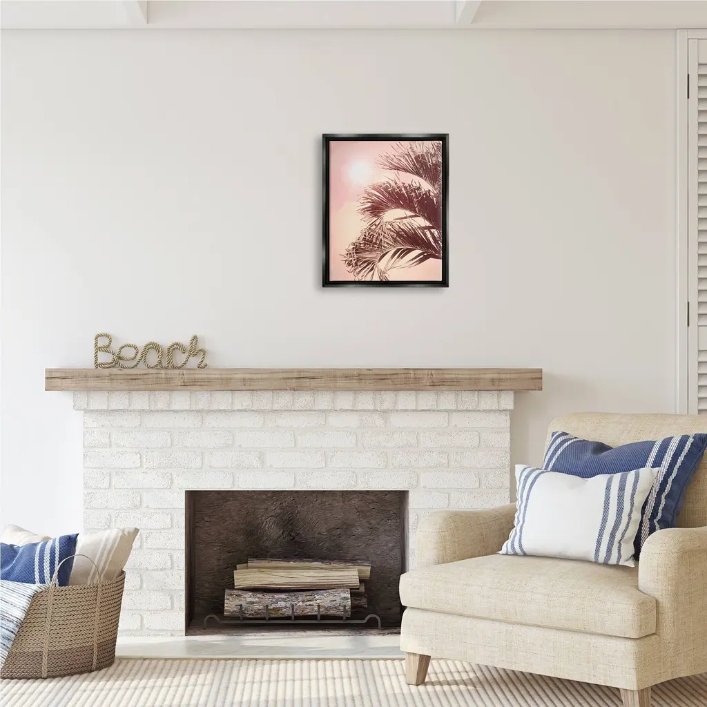 Elevate your home or office to the next level with Stupell Framed Floating Canvas Wall Art. Our premium hand-stretched canvas is mounted securely into a sturdy lightweight frame. The museum-style gap between the wrapped canvas and the box frame gives the illusion of floating artwork. Stupell Wall Art is made in the USA.Features: Dimensions: 17 x 1.7 x 21 Frame, 16 x 1.5 x 20 Canvas ArtFloating Frame Sizes Include Standard: 17 x 1.7 x 21 Oversized: 25 x 1.7 x 31Wall Art is Ready to Hang with Hardware Free Hanging. No installation required. For Easy Set Up Lean or Layer Artwork on Shelf or Against Wall.Our elevated 1.7" Thick Floating Frame is the perfect complement to our canvas style Wall Art. We use only the highest quality inks in house with industry leading printing solutions. Canvas is hand stretched over a durable wood foundation and then mounted securly into a Modern Box Frame. Made in the USA.Artwork Relates To: Sky, Sun, Palm Tree, Plant, Tree, Flare, Light, Sunlight, Summer, VegetationDesign by Graffi*Tee Studios