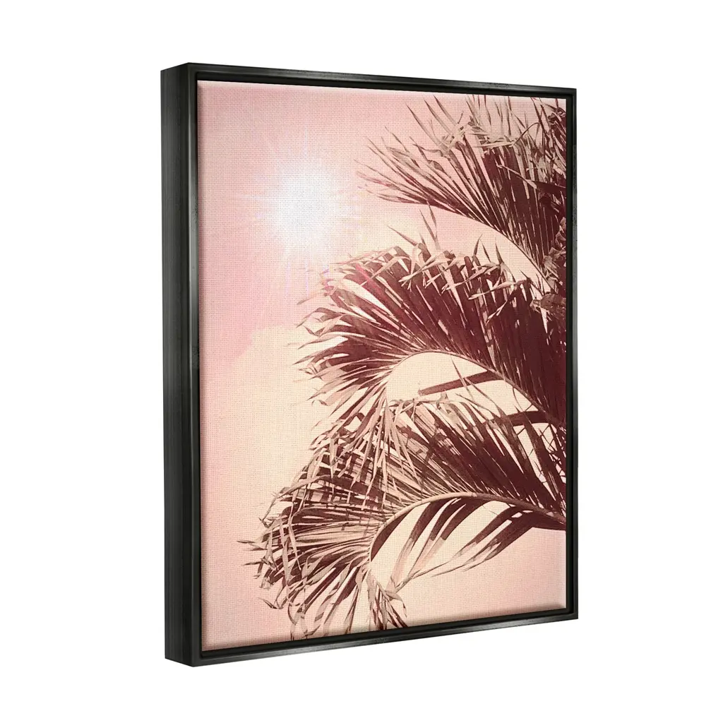 Elevate your home or office to the next level with Stupell Framed Floating Canvas Wall Art. Our premium hand-stretched canvas is mounted securely into a sturdy lightweight frame. The museum-style gap between the wrapped canvas and the box frame gives the illusion of floating artwork. Stupell Wall Art is made in the USA.Features: Dimensions: 17 x 1.7 x 21 Frame, 16 x 1.5 x 20 Canvas ArtFloating Frame Sizes Include Standard: 17 x 1.7 x 21 Oversized: 25 x 1.7 x 31Wall Art is Ready to Hang with Hardware Free Hanging. No installation required. For Easy Set Up Lean or Layer Artwork on Shelf or Against Wall.Our elevated 1.7" Thick Floating Frame is the perfect complement to our canvas style Wall Art. We use only the highest quality inks in house with industry leading printing solutions. Canvas is hand stretched over a durable wood foundation and then mounted securly into a Modern Box Frame. Made in the USA.Artwork Relates To: Sky, Sun, Palm Tree, Plant, Tree, Flare, Light, Sunlight, Summer, VegetationDesign by Graffi*Tee Studios