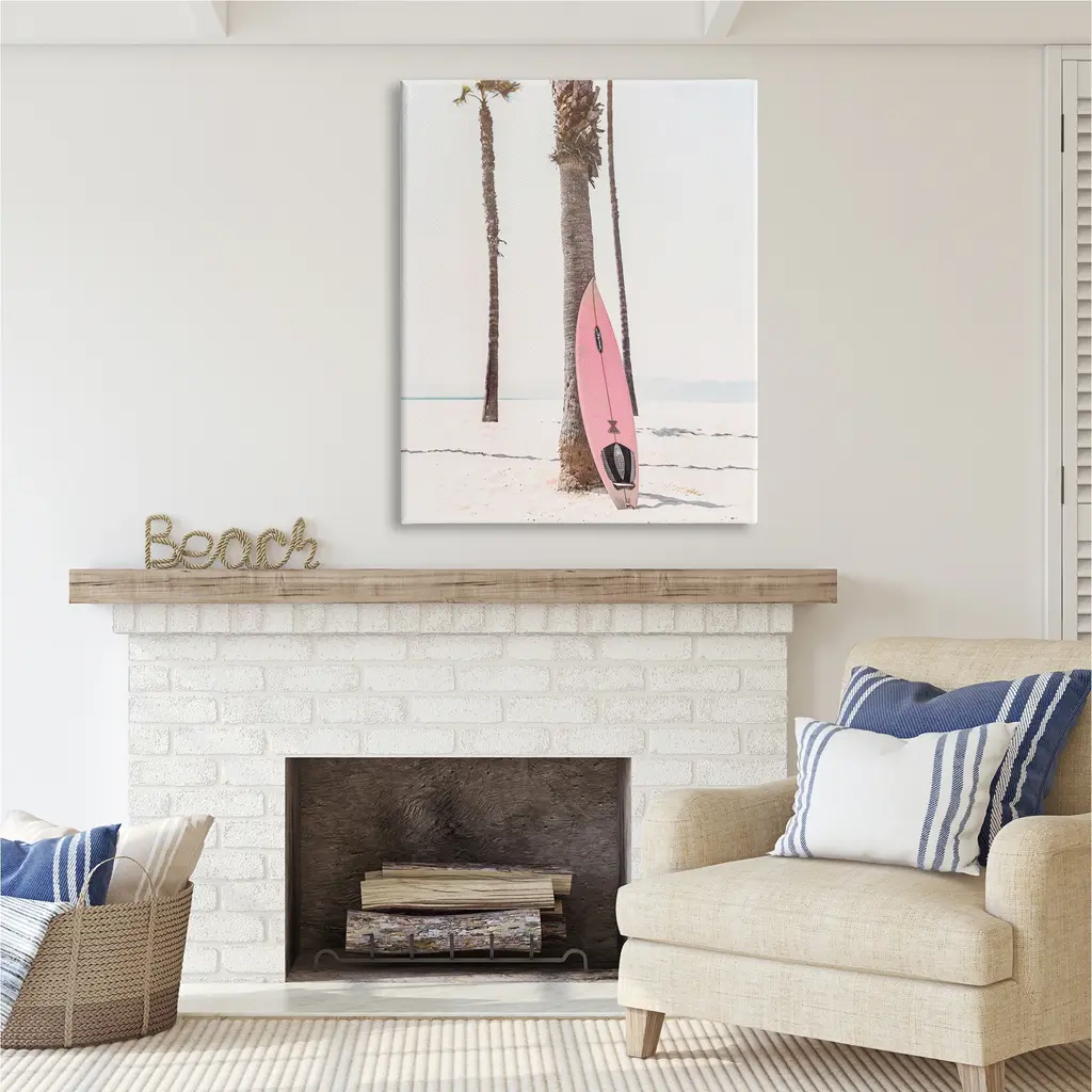 Stupell Pink Surfboard On Coast Canvas Wall Art Design By Sisi And Seb - 36 X 48