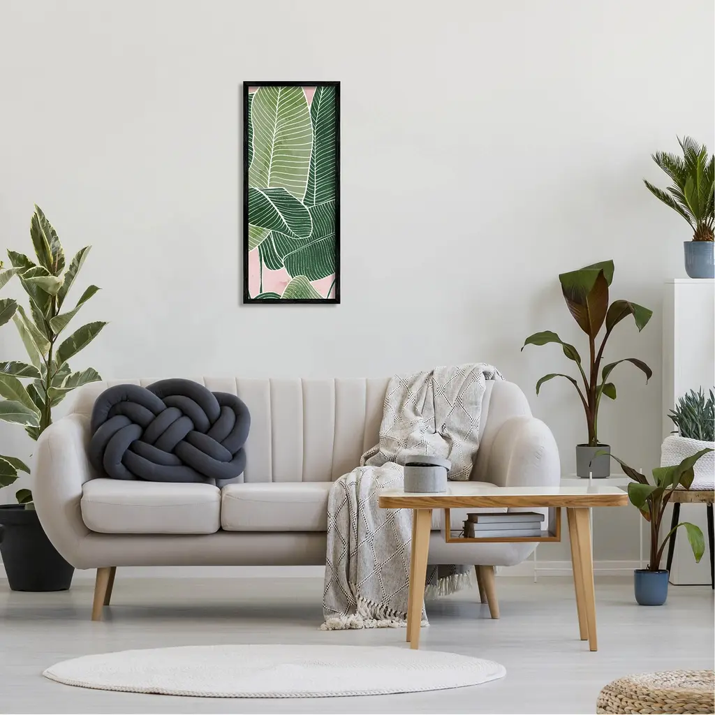 Our Framed Giclee Wall Art adds a touch of class to any space in your home or office. Frames are available in three alluring styles: black, gray farmhouse and white. Our textured artwork will add more depth and dimension to any space. Each piece is mounted with a 1.5 inch thick wood grain frame that is ready to hang! Looking for a statement piece? We have oversized artwork available.Features: Dimensions: 10 x 1.5 x 24 FramedFramed Giclee Sizes Include Standard: 10 x 1.5 x 24 Large: 13 x 1.5 x 30Wall Art is Ready to Hang - No Installation or Hardware Needed. For Easy Set Up Lean or Layer Artwork on Shelf or Against Wall.Our giclée prints are carefully mounted on a durable MDF backing, and then perfectly finished in a 1.5 inch thick woodgrain frame. Mounted frame colors include black, gray farmhouse and white. Made In USA.Artwork Relates To: Leaf, Plant, Vegetation, Leaf, Nature, Green, Pink, Pattern, BotanicalDesign by Ziwei Li