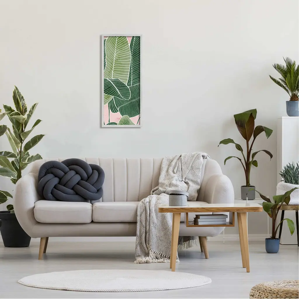 Our Framed Giclee Wall Art adds a touch of class to any space in your home or office. Frames are available in three alluring styles: black, gray farmhouse and white. Our textured artwork will add more depth and dimension to any space. Each piece is mounted with a 1.5 inch thick wood grain frame that is ready to hang! Looking for a statement piece? We have oversized artwork available.Features: Dimensions: 10 x 1.5 x 24 FramedFramed Giclee Sizes Include Standard: 10 x 1.5 x 24 Large: 13 x 1.5 x 30Wall Art is Ready to Hang - No Installation or Hardware Needed. For Easy Set Up Lean or Layer Artwork on Shelf or Against Wall.Our giclée prints are carefully mounted on a durable MDF backing, and then perfectly finished in a 1.5 inch thick woodgrain frame. Mounted frame colors include black, gray farmhouse and white. Made In USA.Artwork Relates To: Leaf, Plant, Vegetation, Leaf, Nature, Green, Pink, Pattern, BotanicalDesign by Ziwei Li