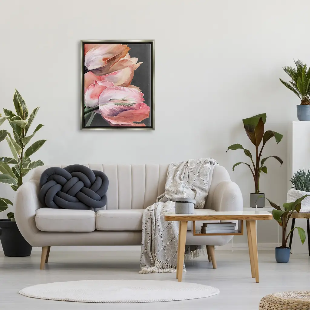 Stupell Pink Tulips Flower Arrangement Framed Floater Canvas Wall Art By Jennifer Paxton Parker - 16 X 20 - Grey