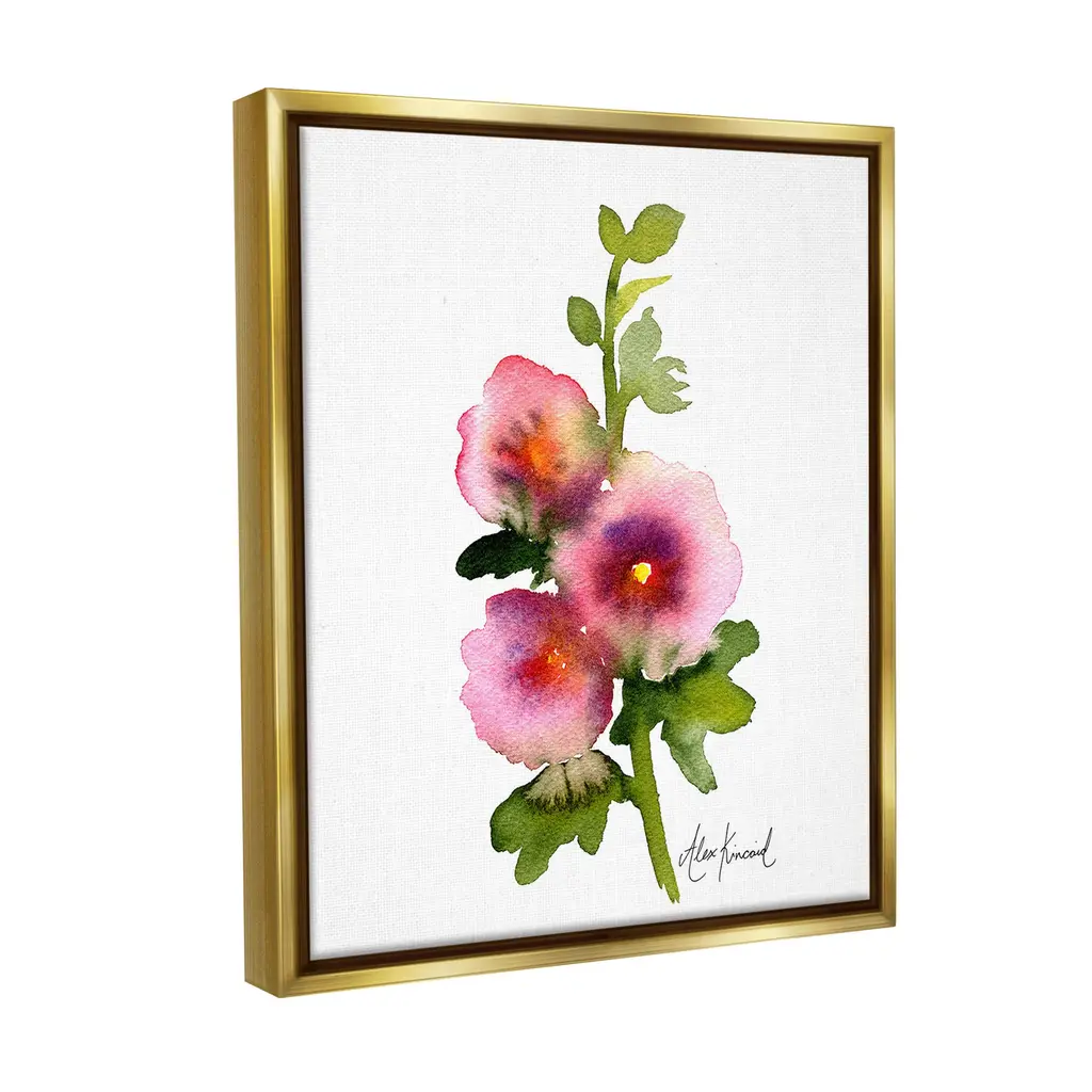 Stupell Pink Watercolor Flowers Framed Floater Canvas Wall Art Design By Alexandria Gilbert Kincaid - 25 X 31 - Gold