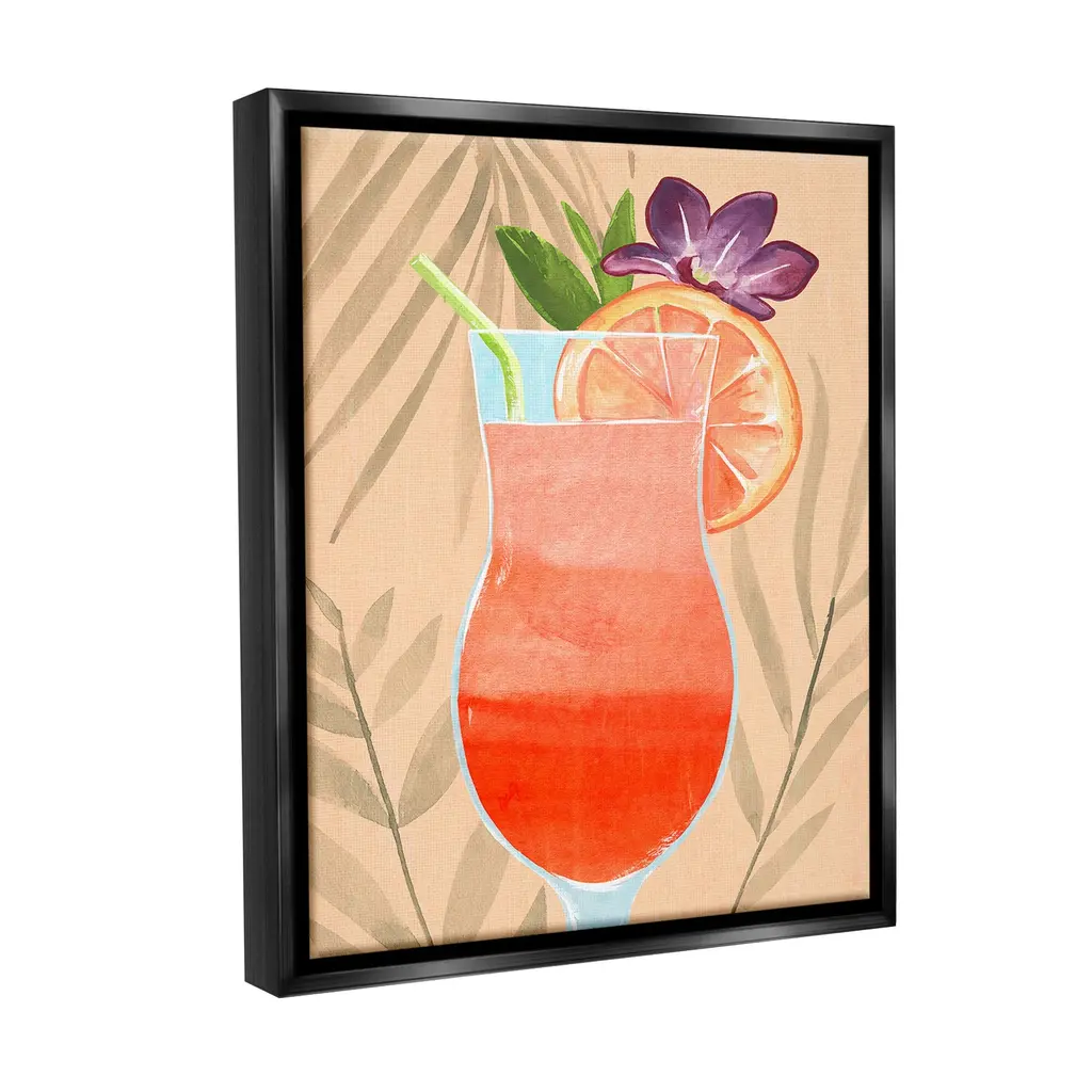 Elevate your home or office to the next level with Stupell Framed Floating Canvas Wall Art. Our premium hand-stretched canvas is mounted securely into a sturdy lightweight frame. The museum-style gap between the wrapped canvas and the box frame gives the illusion of floating artwork. Stupell Wall Art is made in the USA.Features: Dimensions: 17 x 1.7 x 21 Frame, 16 x 1.5 x 20 Canvas ArtFloating Frame Canvas Products are available in sizes 17"x21" and 25"x31". All Floating Frame Canvas Products have a 1.7" Depth.Wall Art is Ready to Hang with Hardware Free Hanging. No Installation required. For Easy Set Up Lean or Layer Artwork on Shelf or Against Wall. Artwork is Permently Fixed into the Frame.Our elevated 1.7" Thick Floating Frame is the perfect complement to our canvas style Wall Art. We use only the highest quality inks in house with industry leading printing solutions. Canvas is hand stretched over a durable wood foundation and then mounted securly into a Modern Box Frame. Made in the USA.Artwork Relates To: Alcohol, Beverage, Cocktail, Fruit, Plant, Citrus, Grapefruit, Liquor, Wine, Modern, TropicalDesign by Annie Warren