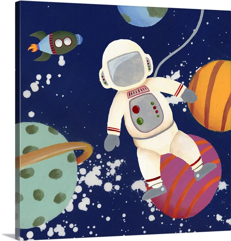 Stupell Playful Astronaut Floating In Space Planets Rocketship Framed Wall Art - 24 X 24 - Grey