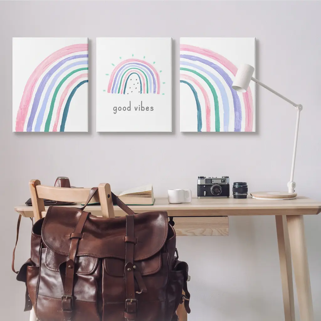 Stupell Playful Good Vibes Rainbow Pastel Pink Purple Arches 3Pc Multi Piece Canvas Wall Art Set - Multi-Color - 24 X 30