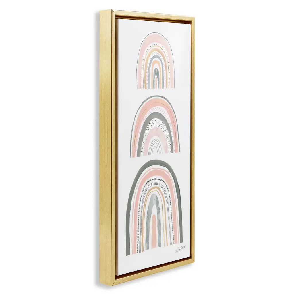 Elevate your home or office to the next level with Stupell Framed Floating Canvas Wall Art. Our premium hand-stretched canvas is mounted securely into a sturdy lightweight frame. The museum-style gap between the wrapped canvas and the box frame gives the illusion of floating artwork. Stupell Wall Art is made in the USA.Features: Dimensions: 11 x 1.7 x 25 Frame, 10 x 1.5 x 24 Canvas ArtFloating Frame Canvas Products are available in sizes 11"x25" and 14"x31". All Floating Frame Canvas Products have a 1.7" Depth.Wall Art is Ready to Hang with Hardware Free Hanging. No Installation required. For Easy Set Up Lean or Layer Artwork on Shelf or Against Wall. Artwork is Permently Fixed into the Frame.Our elevated 1.7" Thick Floating Frame is the perfect complement to our canvas style Wall Art. We use only the highest quality inks in house with industry leading printing solutions. Canvas is hand stretched over a durable wood foundation and then mounted securly into a Modern Box Frame. Made in the USA.Artwork Relates To: Pastel, Rainbow, Kid's, Abstract, MinimalDesign by Courtney Prahl