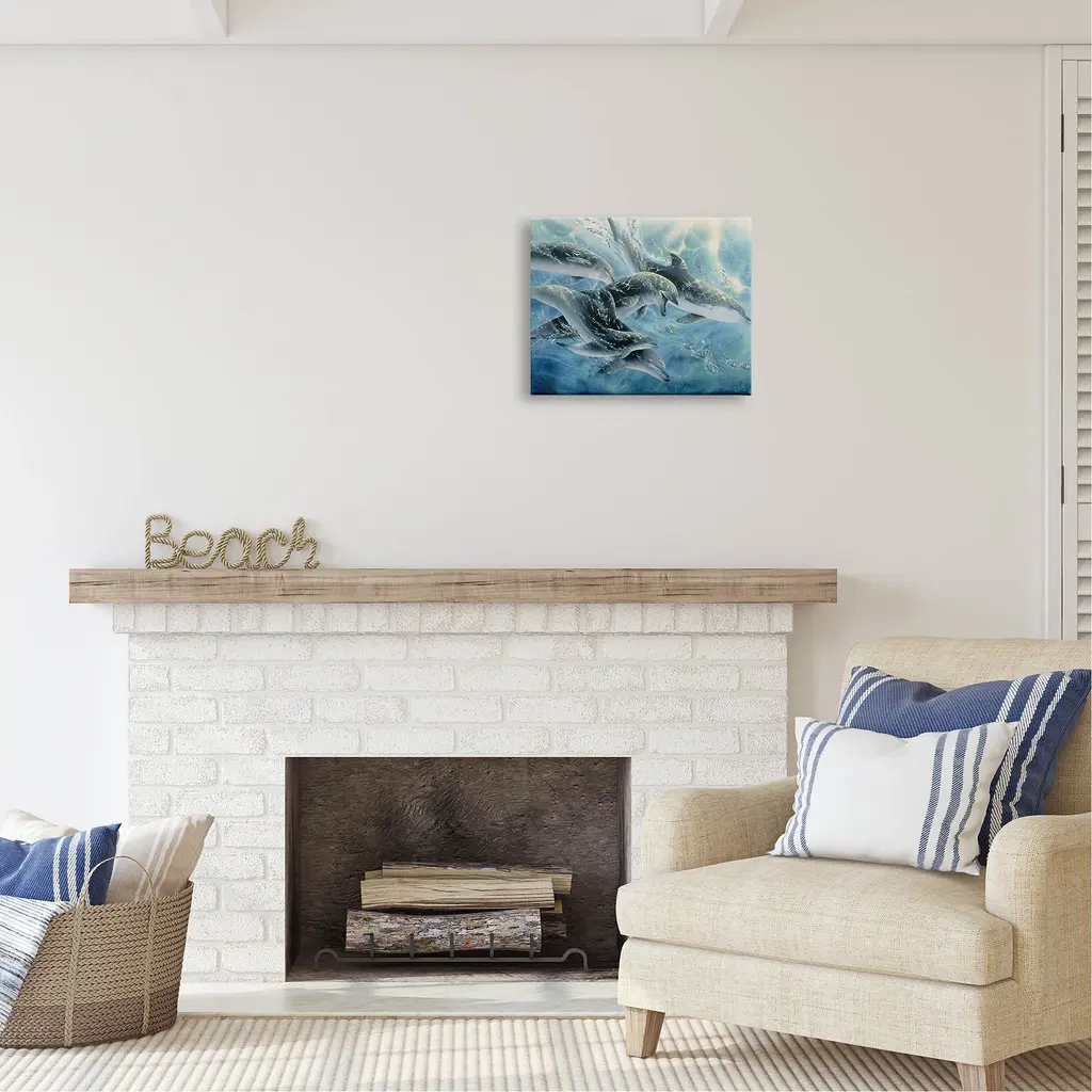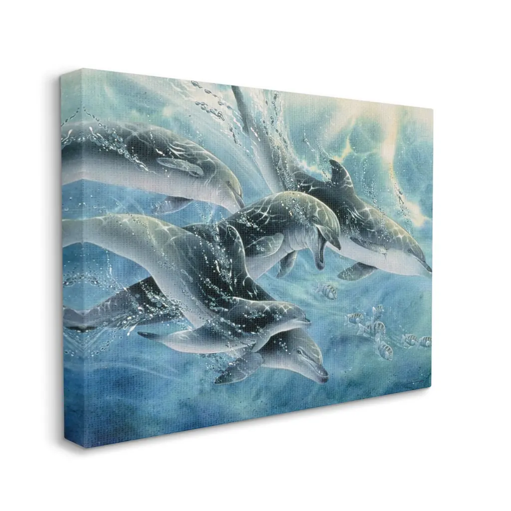 We create our stretched canvas to the highest standards. Using only the highest quality inks and canvas on Mimaki printers, we hand-cut and stretch each piece over a 1.5-inch thick wooden frame for hanging. As a result, the art comes ready to hang on the sturdy ledge with no installation required. Stupell Wall Art is made in the USA.Features: Dimensions: 20 x 1.5 x 16 InchesStretched Canvas Sizes Include Standard: 20 x 1.5 x 16 Large: 30 x 1.5 x 20 X-Large: 40 x 1.5 x 30 Oversized: 48 x 1.5 x 36Wall Art is Ready to Hang - No Installation or Hardware Needed. For Easy Set Up Lean or Layer Artwork on Shelf or Against Wall.Our stretched canvas is created with the highest standards. We use only the highest quality inks and canvas on our in house Mimaki printers, and then hand cut and stretch each piece over a 1.5 inch thick wooden frame for hanging. Made In USA.Artwork Relates To: Animal, Dolphin, Mammal, Sea Life, Sea, Water, WildlifeDesign by Linda Thompson