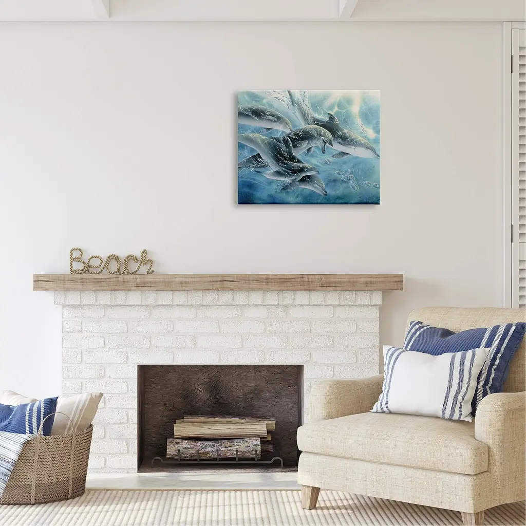 We create our stretched canvas to the highest standards. Using only the highest quality inks and canvas on Mimaki printers, we hand-cut and stretch each piece over a 1.5-inch thick wooden frame for hanging. As a result, the art comes ready to hang on the sturdy ledge with no installation required. Stupell Wall Art is made in the USA.Features: Dimensions: 20 x 1.5 x 16 InchesStretched Canvas Sizes Include Standard: 20 x 1.5 x 16 Large: 30 x 1.5 x 20 X-Large: 40 x 1.5 x 30 Oversized: 48 x 1.5 x 36Wall Art is Ready to Hang - No Installation or Hardware Needed. For Easy Set Up Lean or Layer Artwork on Shelf or Against Wall.Our stretched canvas is created with the highest standards. We use only the highest quality inks and canvas on our in house Mimaki printers, and then hand cut and stretch each piece over a 1.5 inch thick wooden frame for hanging. Made In USA.Artwork Relates To: Animal, Dolphin, Mammal, Sea Life, Sea, Water, WildlifeDesign by Linda Thompson