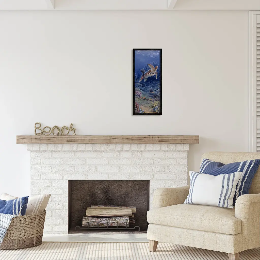 Add dimension to any room with our textured Framed Giclee Artwork. Our framed artwork is securely mounted into a 1.5-inch thick wood grain frame and ready to hang. Frames are available in three alluring styles: black, gray farmhouse and white. In addition, you should check out our oversized options if you want a statement piece. Stupell Wall Art is made in the USA.Features: Dimensions: 10 x 1.5 x 24 FramedFramed Giclee Sizes Include Standard: 10 x 1.5 x 24 Large: 13 x 1.5 x 30Wall Art is Ready to Hang - No Installation or Hardware Needed. For Easy Set Up Lean or Layer Artwork on Shelf or Against Wall.Our giclée prints are carefully mounted on a durable MDF backing, and then perfectly finished in a 1.5 inch thick woodgrain frame. Mounted frame colors include black, gray farmhouse and white. Made In USA.Artwork Relates To: Animal, Reptile, Sea Life, Turtle, Sea Turtle, Tortoise, Nature, Sea, Water, Reef, AquaticDesign by Linda Thompson